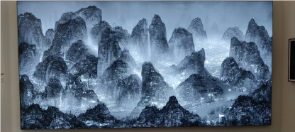 涂欢乐同学被展品《极夜霓虹》引发了共鸣。这件作品用城市建筑的影像作为画笔,描绘以宋代峰峦叠嶂的山水风格为蓝本的数码影像创作,极致的人工产物——城市建筑与天然的鬼斧神工——山水的融合创造了视觉冲击,同时也引发了对现代城市生活和自然环境的反思。他认为这件作品中的“共栖“透露出当下发展中人对于自然的关注。同时,他结合专业,认为作为建筑师,我们不应该只集中在宏伟的城市与建筑的建造上,也应该回头关注我们身边的一切——自然环境、植物、动物等等,共栖才能共存、共荣。这也是当下设计师的一种责任和使命。