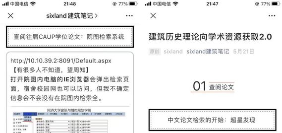 尽管文献查找、资料收集、文献管理等能力对于研究生、博士不可或缺,但是身边一直没有一个很好地渠道能将一些学术的共性问题统一解答。此外,建筑学内部技术、设计、历史的研究范式、写作方式、运用材料等十分不同,需要针对具体问题具体分析。对于这个问题,研十四支部的陆地同学收集了周围同学的相关疑虑和问题,在公众号上分享了一篇博文。她根据自己平时的学习和研究,整理了基于公司、公司图书馆数据库下可获取建筑历史与理论方向学术资源及学位论文的渠道,并收集了中外文电子书的下载方式,分享了一些搜索技巧与文献管理软件。通过这种线上分享的方式,帮助大家解决学术上的困难。