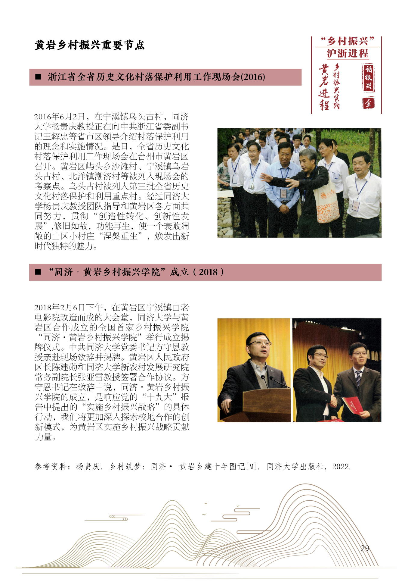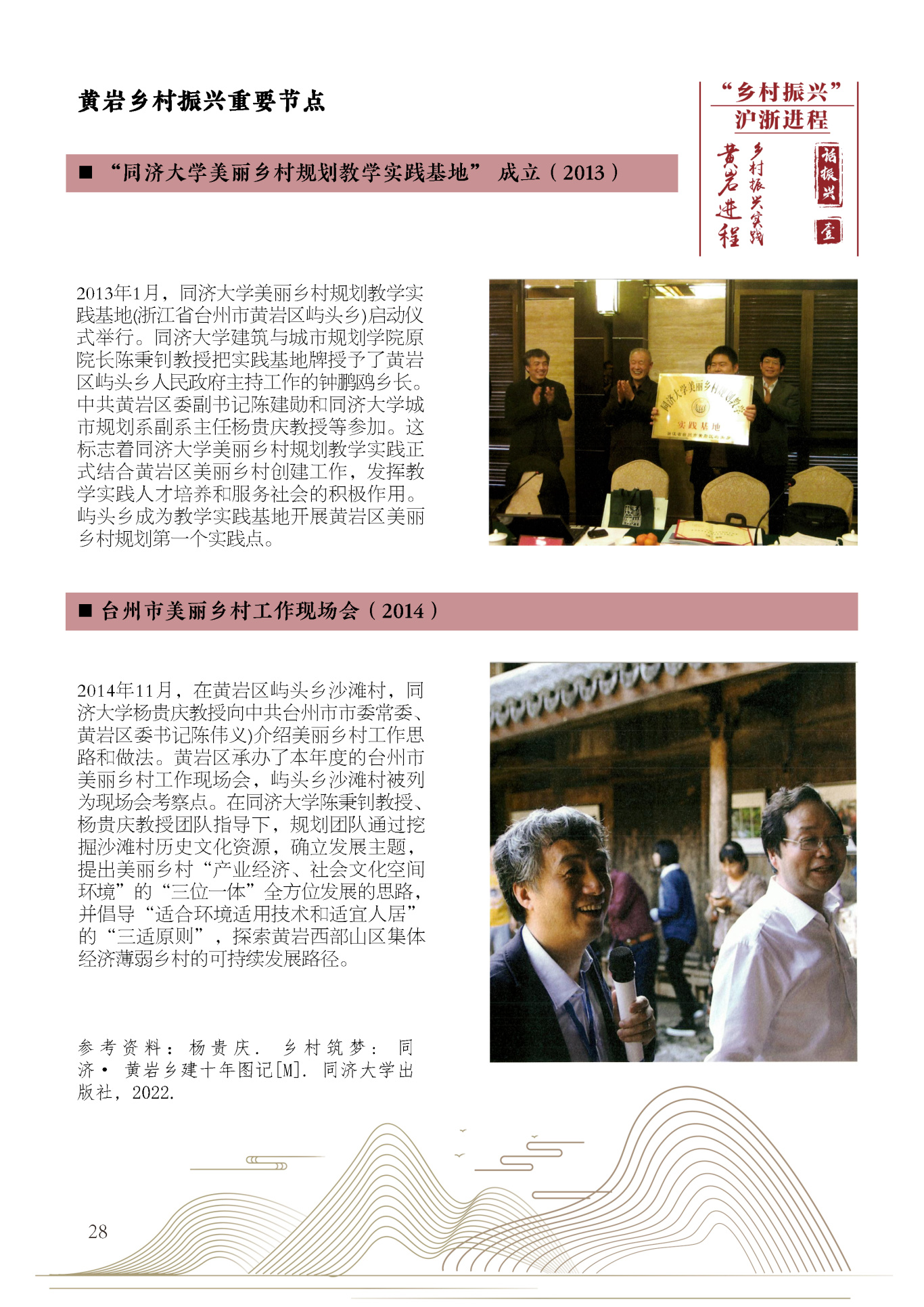 新时代乡村振兴工作法”包括文化定桩、点穴启动、柔性规划、细化确权、功能注入、适用技术、培训跟进、党建固基、城乡共富、话语构建。在黄岩乡村振兴进程中,“新时代乡村振兴工作法”体现在“在地规划工作室”的创建和推广、屿头乡沙滩村、宁溪镇乌岩头村、头陀镇头陀老街、南城街道“贡橘园等的规划建设中。