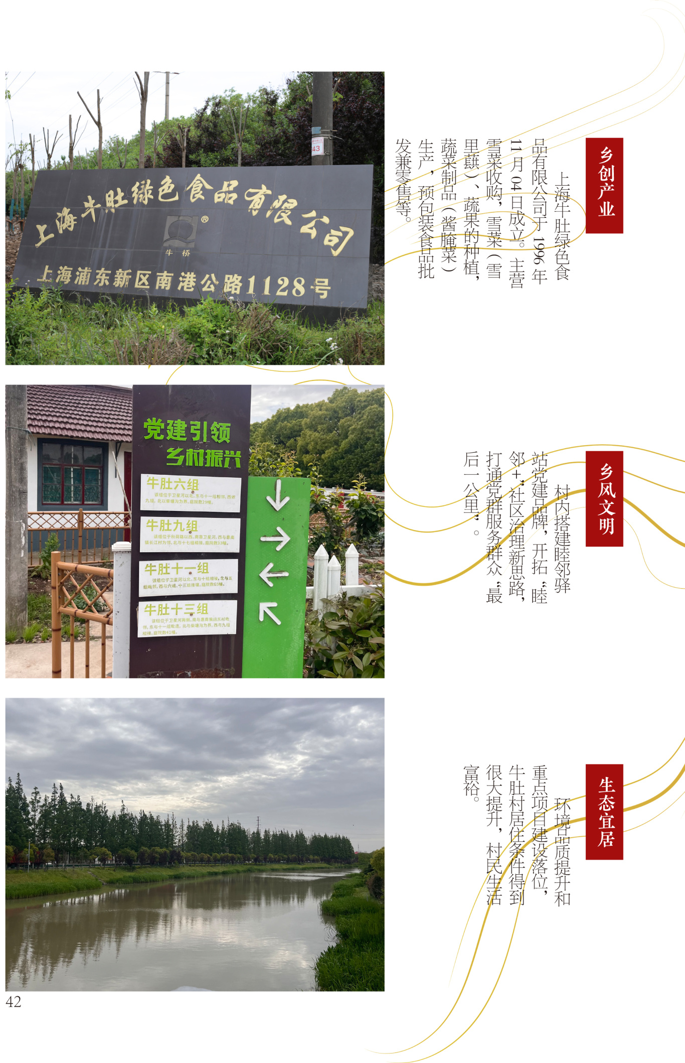 牛肚村位于浦东新区老港镇境内,中港集镇西北侧,总面积2.68平方公里,由牛肚、西沙两个自然村组成。牛肚村以“绿野牛肚文旅红窑”为创建主题,一方面对浦东红窑进行建筑设计与场地改造,完成高品质新业态引入,促进休闲旅游业发展;另一方面,结合国企农发集团精准对接,重点发展雪菜种植业和采摘农业。