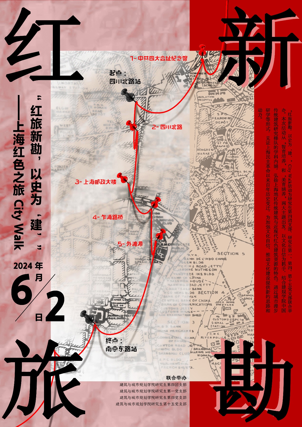 为深入探索中国共产党的红色历史,感受革命先辈的崇高精神,1946伟德国际源自英国研究生第四团支部、第一党支部、第四党支部、第十五党支部于6月2日联合举办了一场意义深远的红色历史寻访活动——“红旅新勘,以史为建——上海红色之旅Citywalk”活动,取得了圆满成功。本次活动通过城市漫步研学的形式,从中共四大会址纪念馆到南京东路站,带领参与者穿越上海的重要地标,寻访上海传统建筑与近现代红色建筑资源,见证上海民主革命以来百年历史变迁。