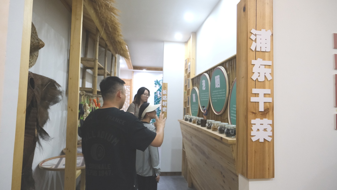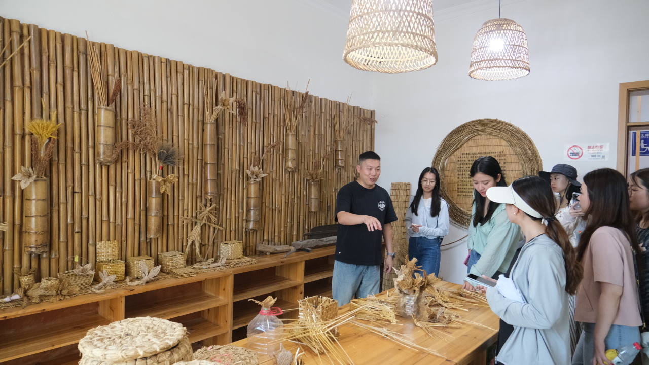 此外,汪书记还带支部同学们参观了长达村史馆、非物质文化遗产展示区。其中,秸秆编织丰富了村中小朋友的假期活动、扎染工艺品充实了当地的退休老人的业余生活,皮影戏和酱菜工艺是当地的非遗。展示区中详细呈现了非遗文化内涵,让支部同学们感受到长达村的文化自信与文化底蕴。