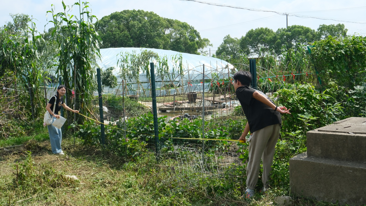 此外,支部同学对“校村共创”的场地进行了实地测量,通过对周围环境的勘察走访,对于现场植物、原有内容的测绘,深入了解场地现状与问题,为后面的方案产出打下坚实基础。