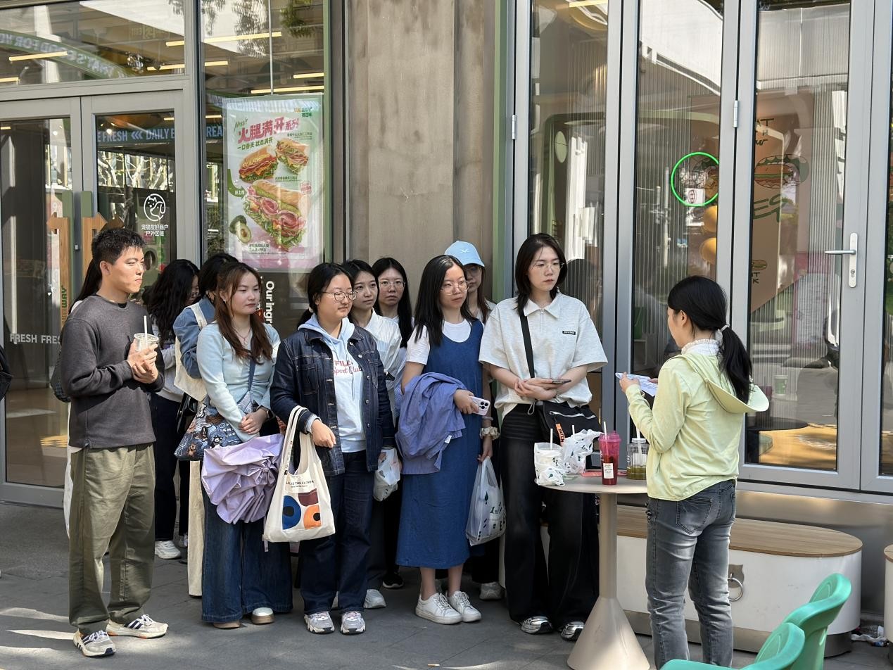 在虹口区今潮八弄历史街区,贾颖慧和张芷曼同学为大家讲解今潮八弄的历史脉络,深入观察石库门里弄建筑的活化利用。街区通过“修旧如旧”的改造策略,将百年弄堂与现代艺术展览、文化市集有机融合,成为上海城市更新的典范案例。同志们感叹道:“历史建筑的保护不是封存,而是让空间与当代生活对话,这正是我们规划专业需要思考的课题。”