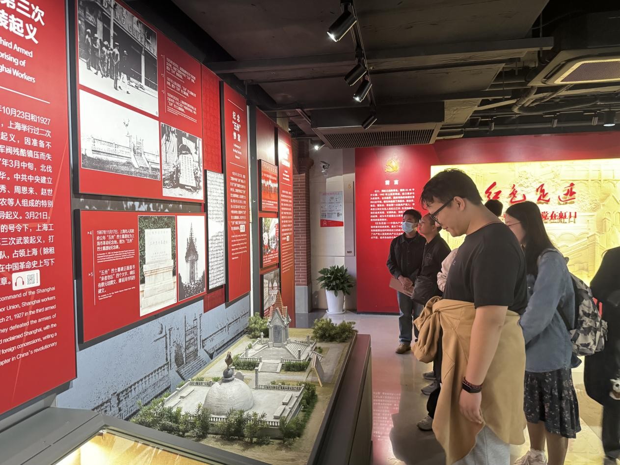 活动伊始,两支部党员在中共四大纪念馆前集结,在庄重的党旗下合影留念。作为中国革命的重要历史坐标,中共四大纪念馆承载着中国共产党早期探索革命道路的壮阔历程。在馆内,党员们通过珍贵史料、场景复原与多媒体展陈,重温了1925年中共四大召开的历史背景与重大意义。