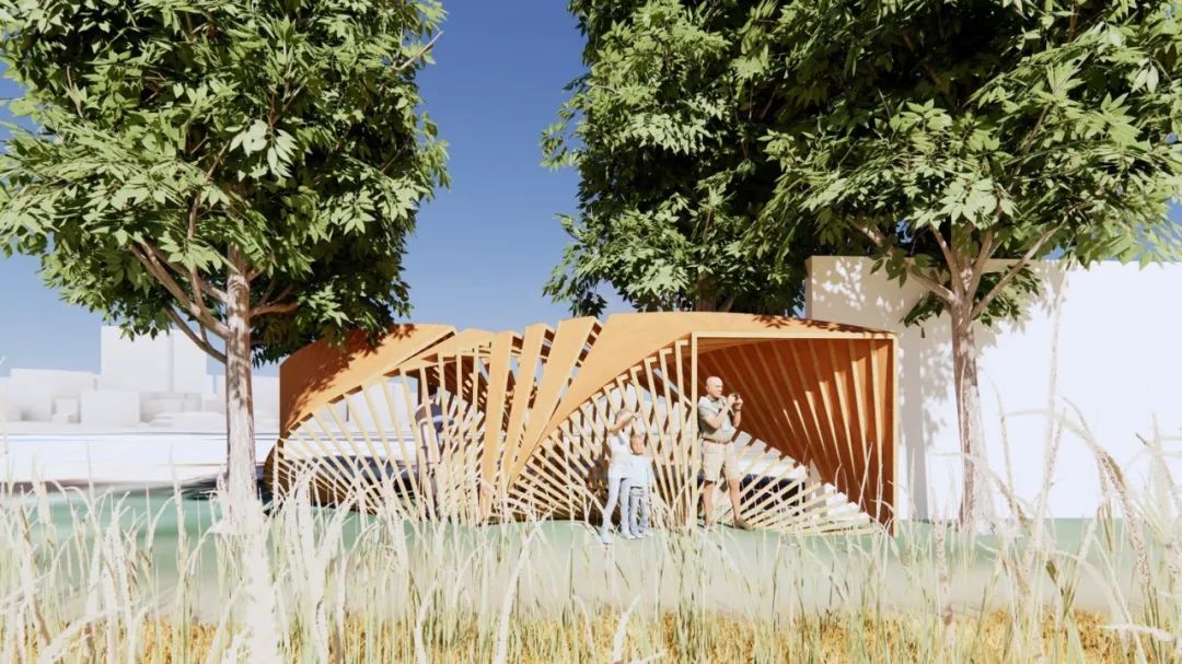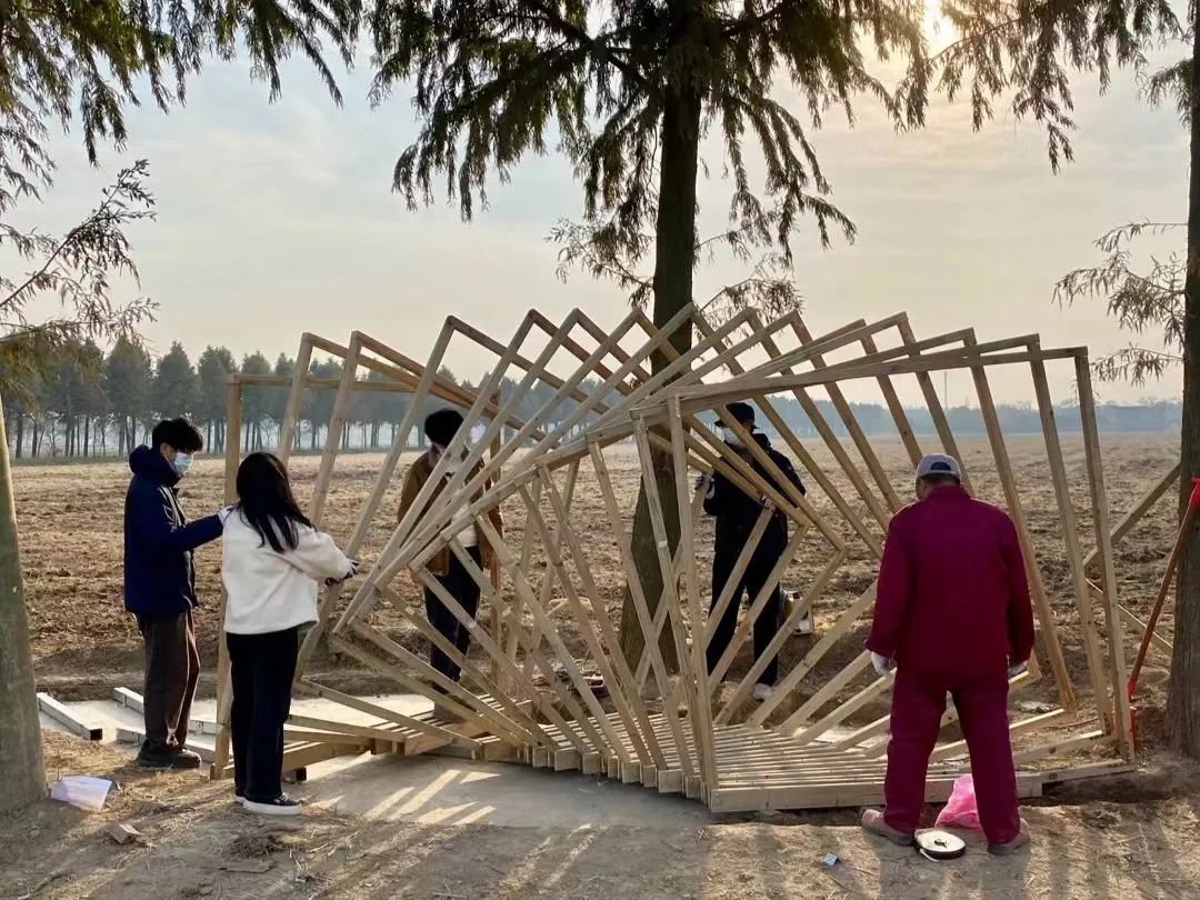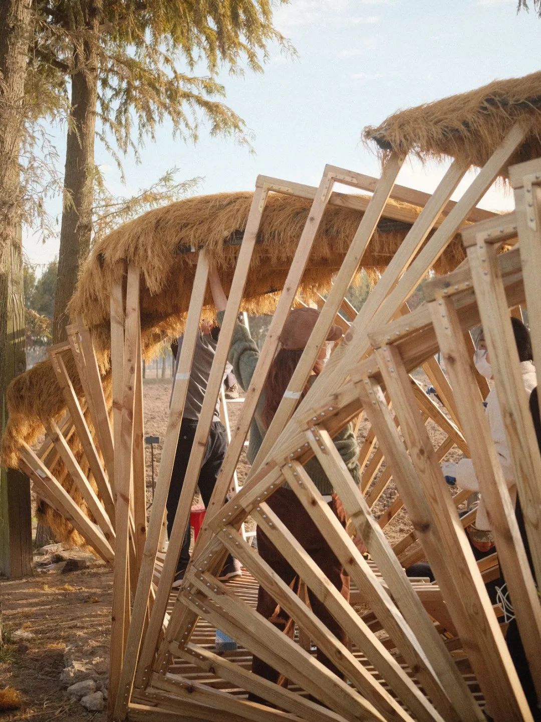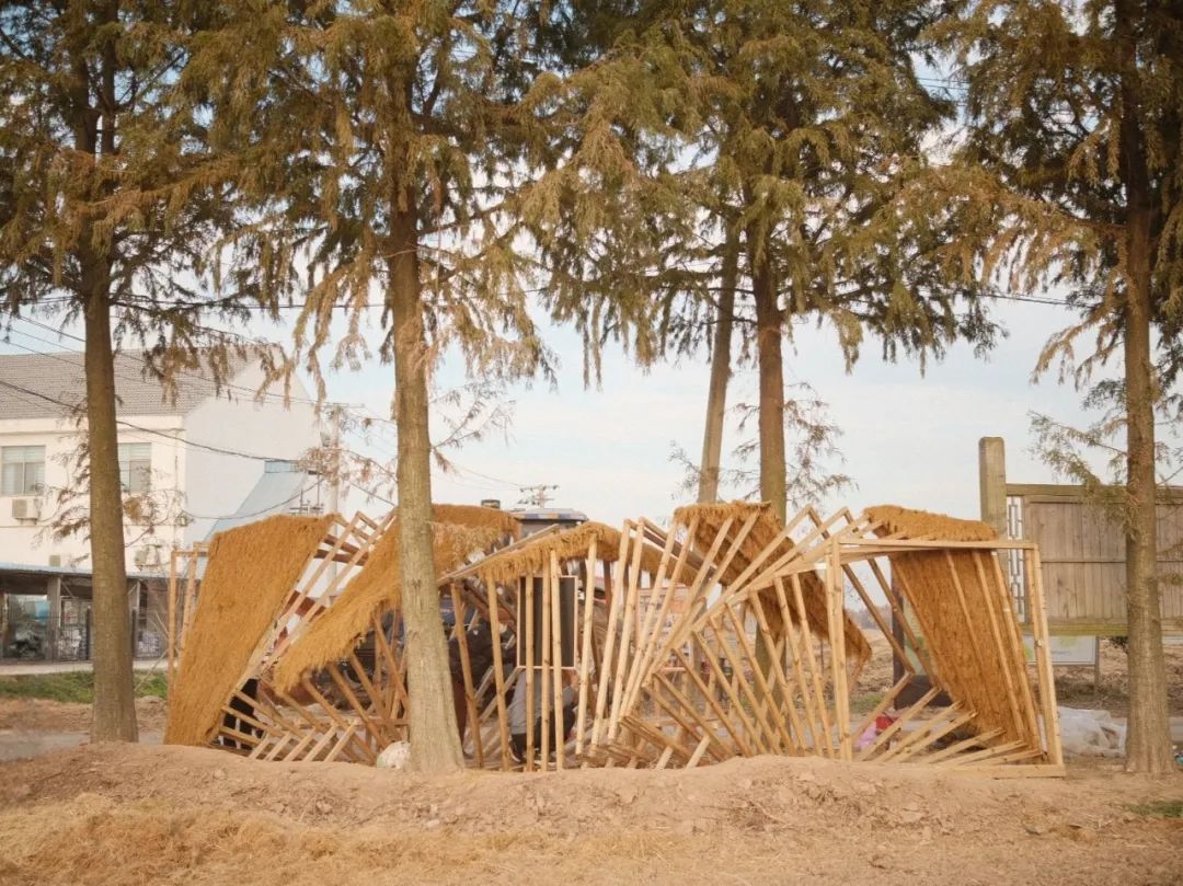 方案完全由员工团队设计产生,以乡村振兴为主题,回应惠军村稻米特色,与稻田景观形成亲切互动。通过使用木材、茅草等材料,方案打造为一座兼顾展示、休憩、观光等功能的稻田艺术装置,使在乡村游线中成为一处亮丽的空间节点。