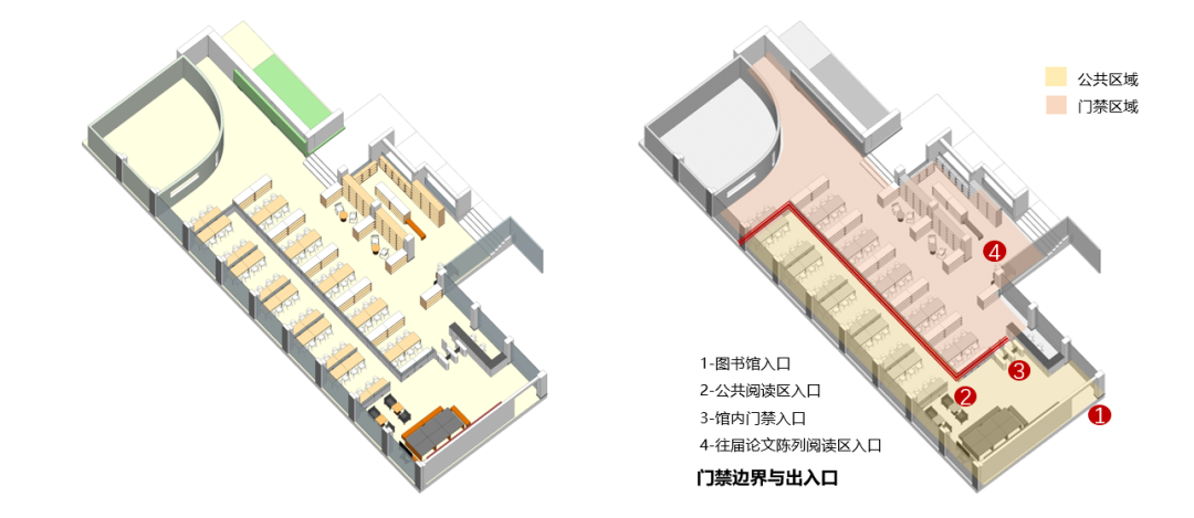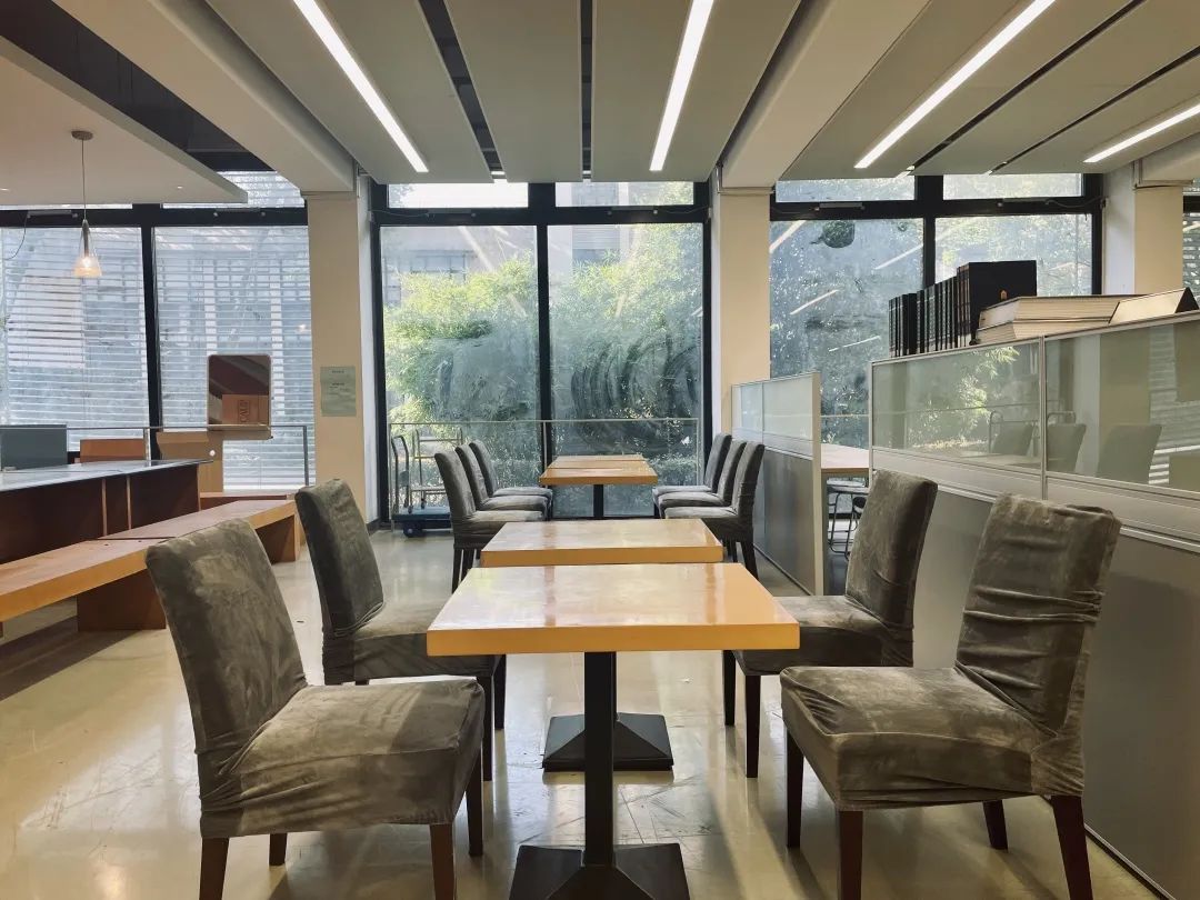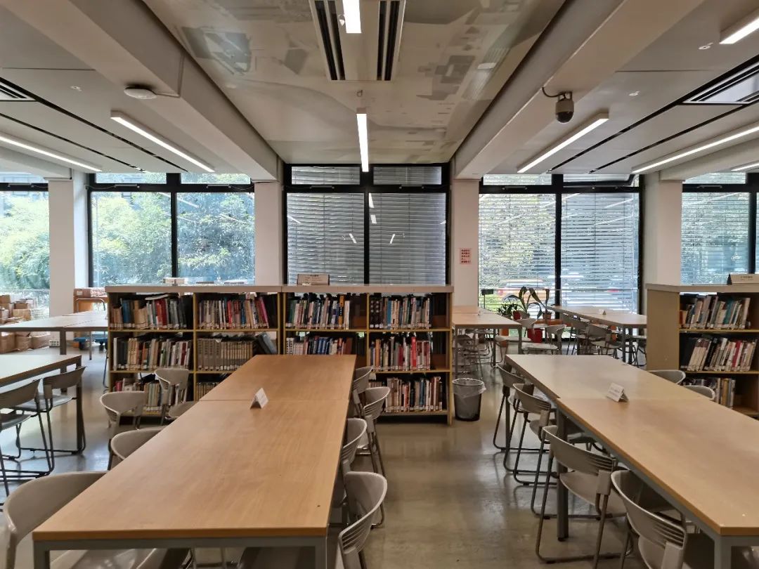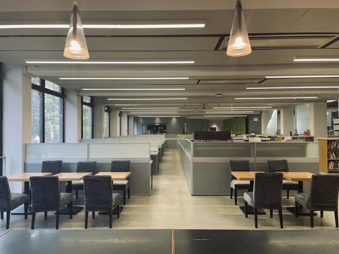 经过改造,我们将原来单一的阅读区用隔断分成门禁内外两部分,划分出休闲讨论区、开放自习区和需要登记进入的阅读区。门禁外的部分开放给同学平时自习使用,门禁内的部分作为图书阅读使用。