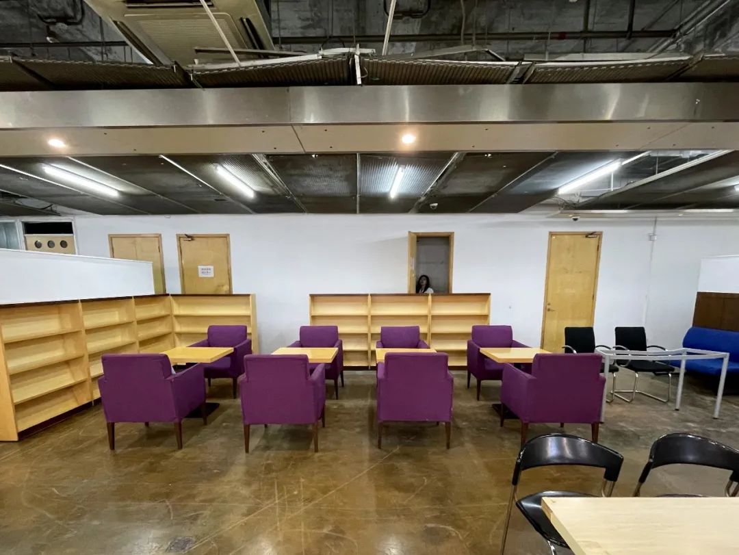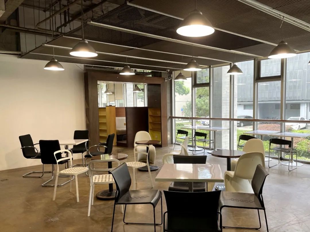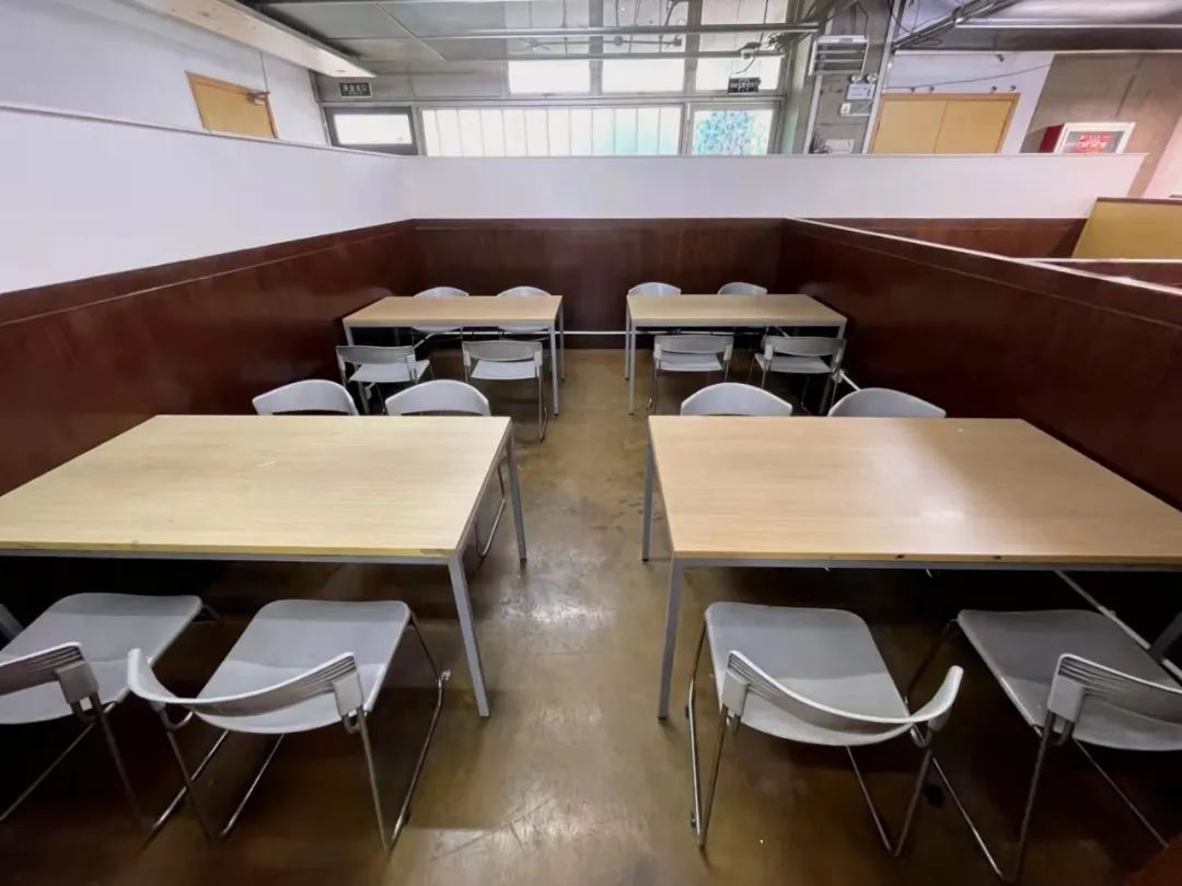 原有空间桌椅摆放杂乱、灯光灰暗,更新后增加座椅数量和摆放方式,并提升灯光亮度,清洁的墙面还能作为投影墙,方便大家开展多种交流活动。
