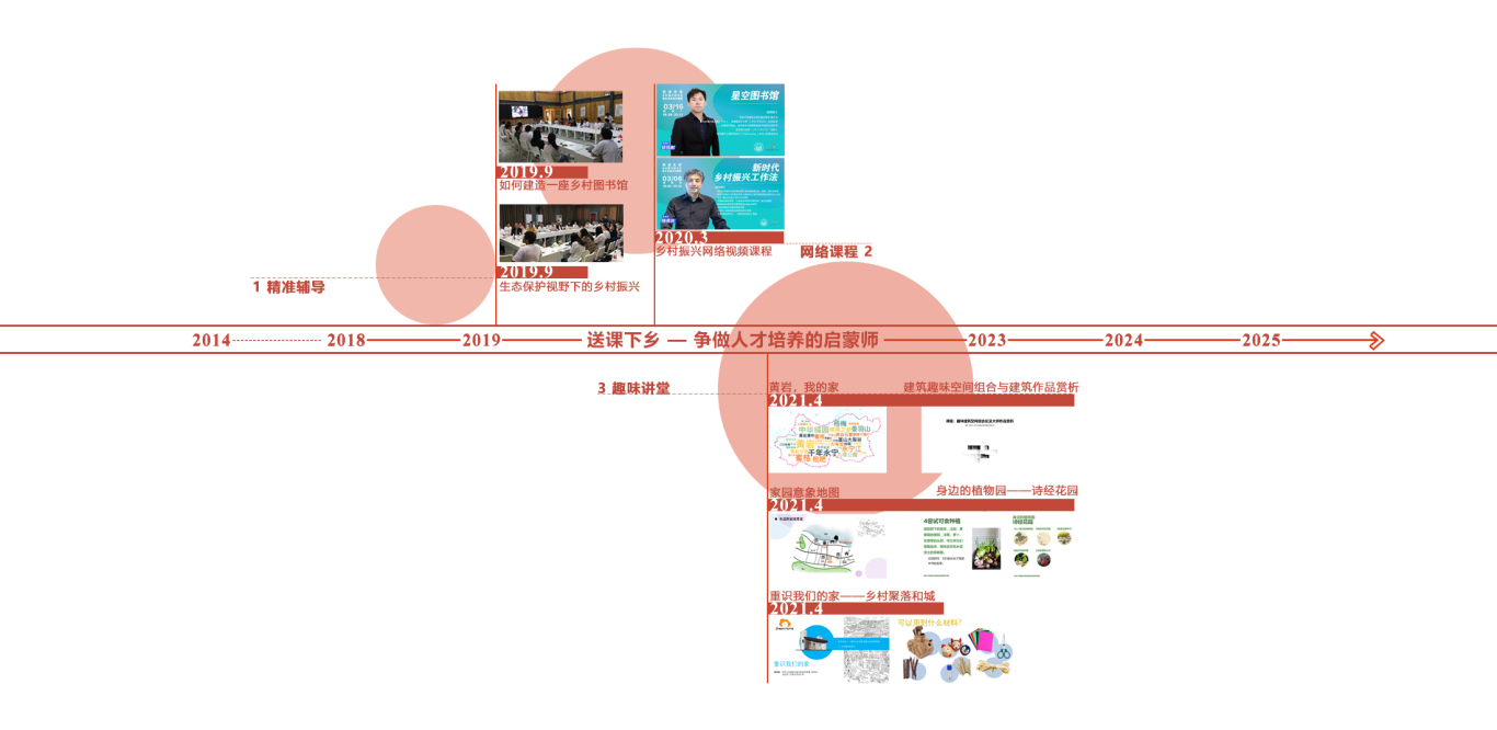 支部通过开展乡村建设专题课程进行乡村振兴人才培育,2019年9月,开展“如何建造一座乡村图书馆”“生态保护视野下的乡村振兴”等专题课程,为黄岩乡村建设者提供了专业的技术指导。2020年3月,推出乡村振兴网络视频课程,包括“新时代乡村振兴工作法”“我家老房怎么办?”等内容,方便村民和乡村干部在线学习。