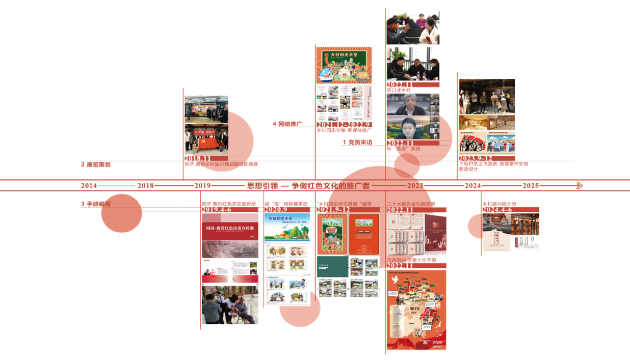 支部积极开展主题系列活动,通过党员采访、展览策划、手册编写、网络推广等多种形式,深入挖掘黄岩乡村的红色文化资源。2018年11月,举办“与祖国同行・以科教济世——同济・黄岩乡村振兴规划建设回顾展”,全面展示了1946伟德国际源自英国在黄岩乡村振兴中的规划建设成果;2022年11月,开展“听‘浙’里实践”“听口述乡村”等活动,通过采访基层党员和村民,记录乡村发展变迁。