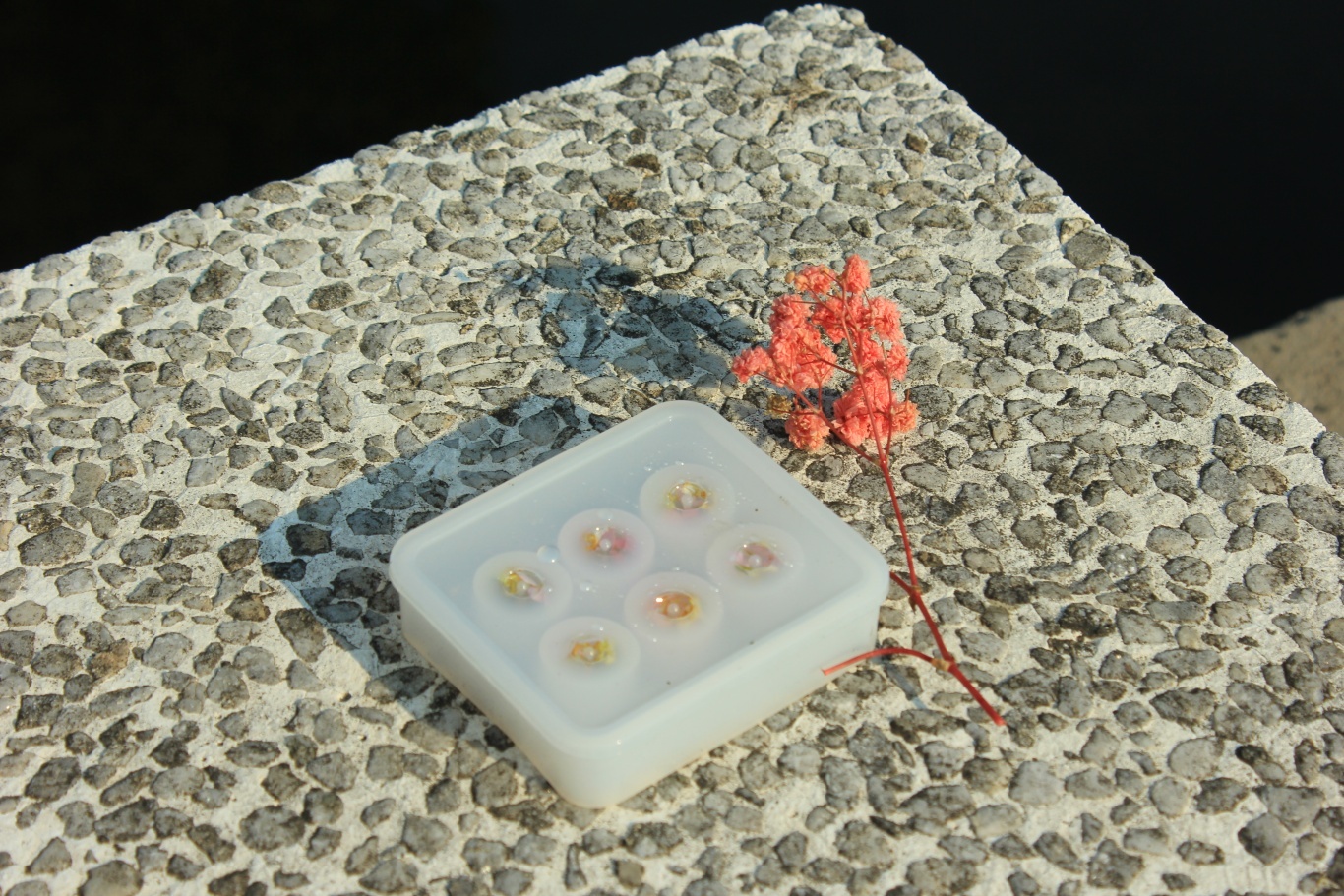 花开霞满树,令人乐无忧。阳光下,合欢树的粉白绒花如云霞般温柔洒落。桑智慧同学采摘下一朵,将其巧妙融入滴胶作品。透过半透明的花丝,阳光洒在花瓣上,细腻的脉络在剔透的胶体中清晰可见。花蕊在模具里缓缓凝固,劳动的喜悦与美好的校园时光在这一刻交融,让五月的美景与青春的记忆被永远珍藏。