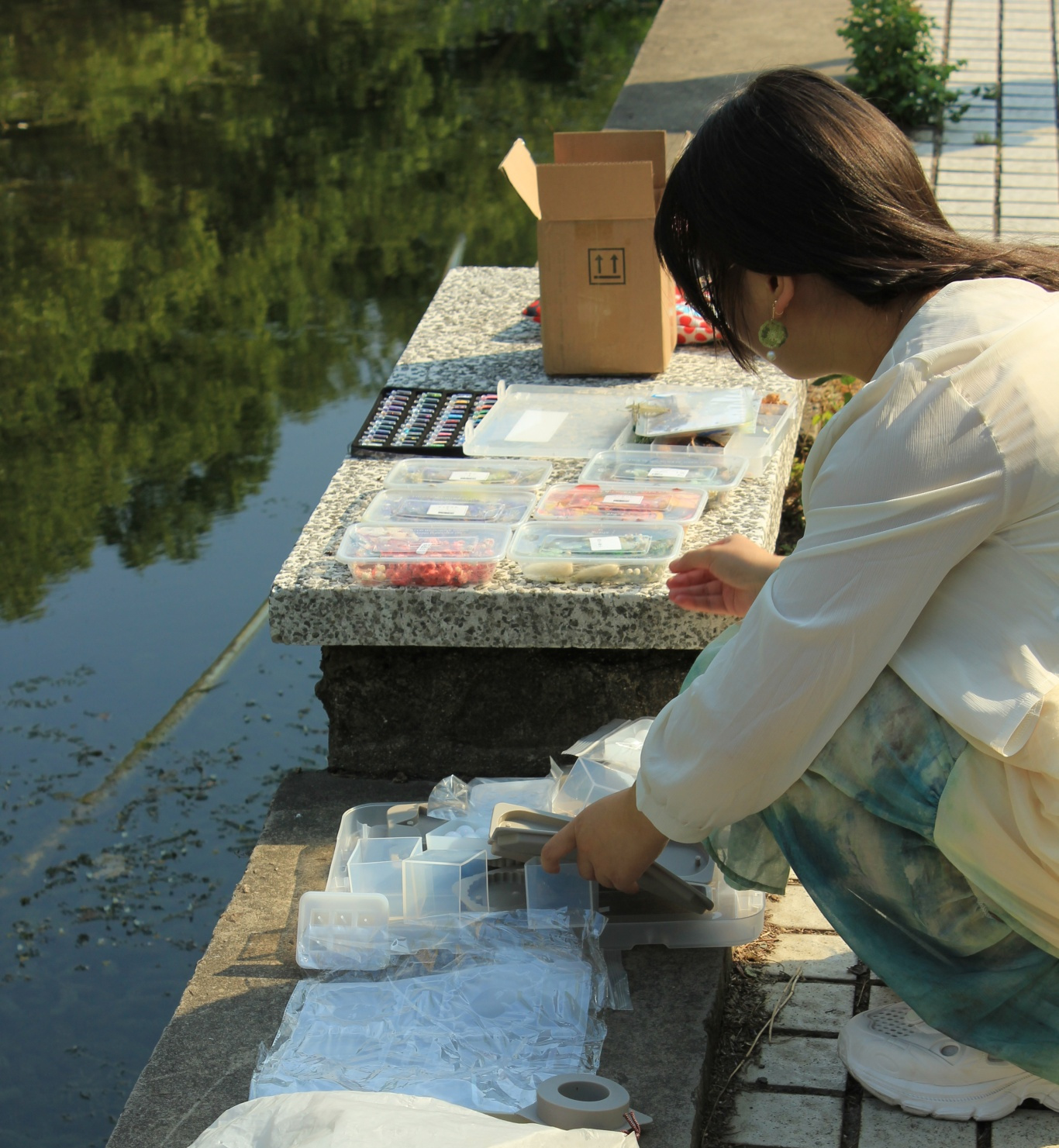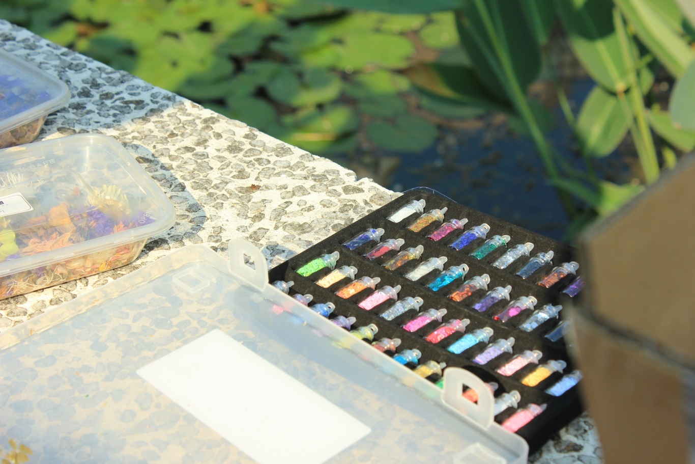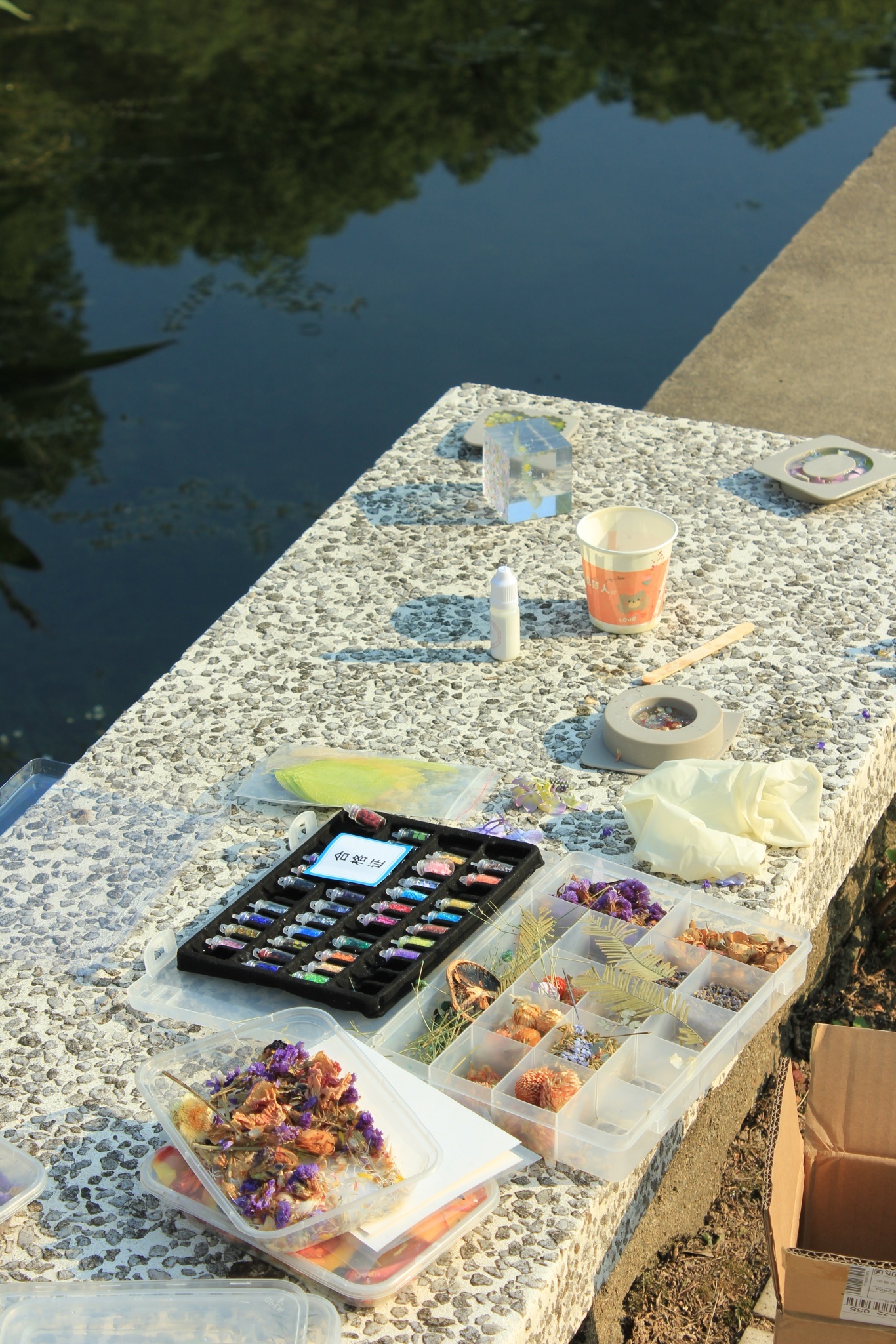 将采集到的植物小心翼翼地摆放进模具,精心设计造型,大家在专注与创造中获得了艺术疗愈的满足。不同的花草在滴胶中呈现出别样的质感和色彩,每一件作品都是自然与心灵的共鸣。看着叶片的脉络、花瓣的纹理在透明胶体中被永久定格,大家不仅感叹自然的神奇,也在潜移默化中加深了对植物世界的认识。
