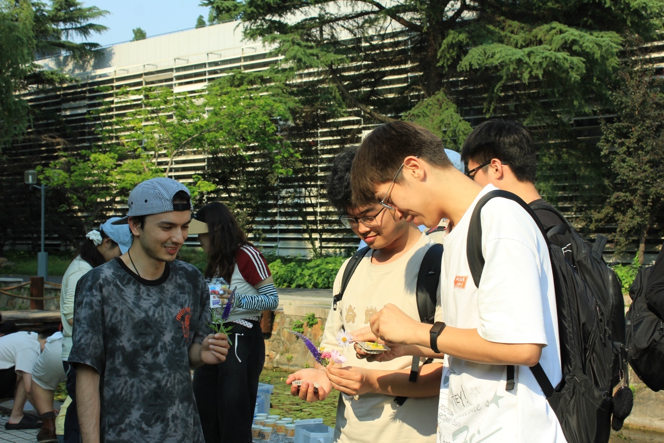 本次党日活动不仅是一场生动的自然教育实践,更是一场融合自然疗愈与艺术疗愈的心灵之旅。大家走进花园,亲手采集翠绿的叶片、娇艳的花瓣和形态各异的草茎,感受大自然的脉动。在采集和创作的过程中,同学们静下心来,细致观察每一片叶脉、每一朵花瓣的独特之处,相互分享彼此对植物的发现与感悟。