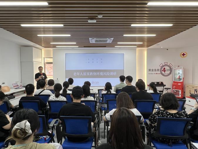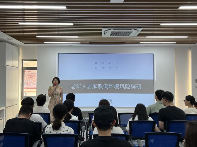 7月2日,动员会议在潍坊新村街道社区服务中心召开,仁济医院团队与街道居委会工作人员参会。会上,姚栋老师及其博士单忱璐介绍了调研核心目标、技术规范与实施流程,明确通过入户调查建立老年跌倒风险与居住环境的关联模型,为居家适老化改造提供依据。仁济医院陈真主任补充医疗支持方案,姚栋老师的硕士陈艺博也说明青年社会工作者职业发展调研相关内容。
