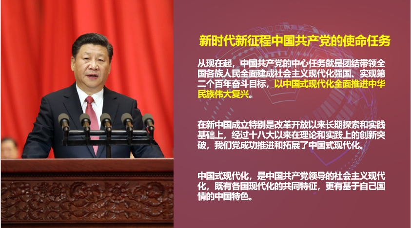 李帅同志报告的内容为:中国式现代化,展示了中国共产党的中心任务就是团结带领全国各族人民全面建成社会主义现代化强国、实现第二个百年奋斗目标,以中国式现代化全面推进中华民族伟大复兴。中国式现代化,是中国共产党领导的社会主义现代化,既有各国现代化的共同特征,更有基于自己国情的中国特色。
