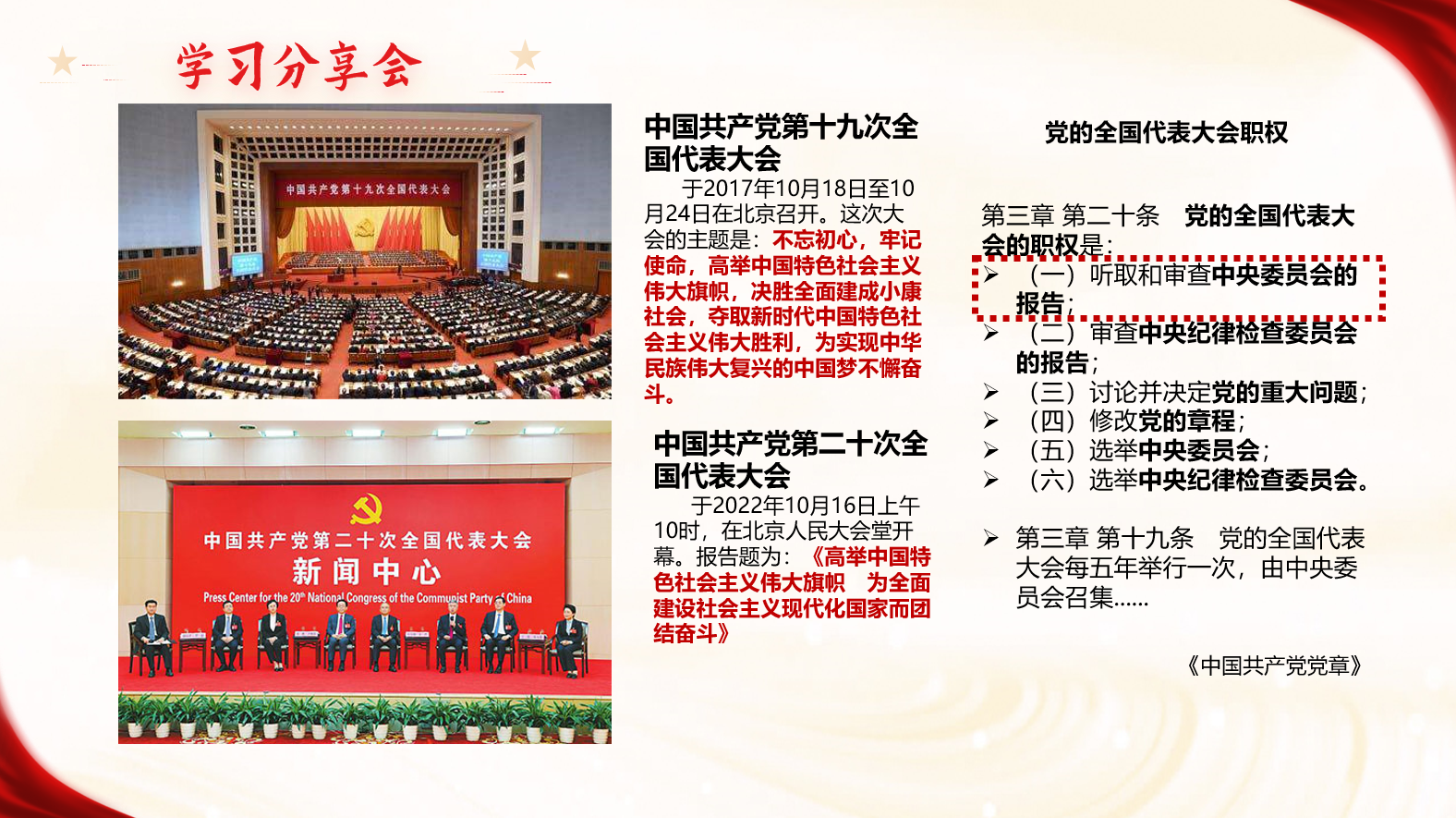 本次分享会由刘政、薛泽鑫、李帅、李欣、许珂伟、井之源六位同志共同进行分享,带领大家共同学习党的二十大精神和党章,为建设中国特色社会主义伟大事业的目标做好充分准备。