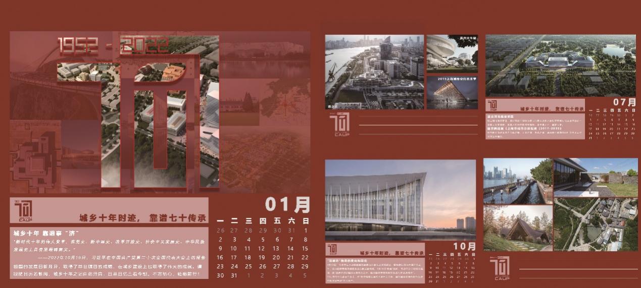 为了“城乡十年”智慧的进一步延续和实体落实,三个支部调动全院发展对象和积极分子成立工作小组自主设计2023年度台历,作为活动周边文创产品的成果产出。台历封面的深红底色和专门设计的70周年院庆logo体现了同济城乡建设历程的深厚底蕴,每个月份的页面则分别展现一个对国家发展产生影响重大的项目,讲述公司师生十年间紧跟国家大政方针砥砺耕耘,发挥学科优势服务国家建设的故事和智慧。项目组已对接厂家并完成台历实体制作。
