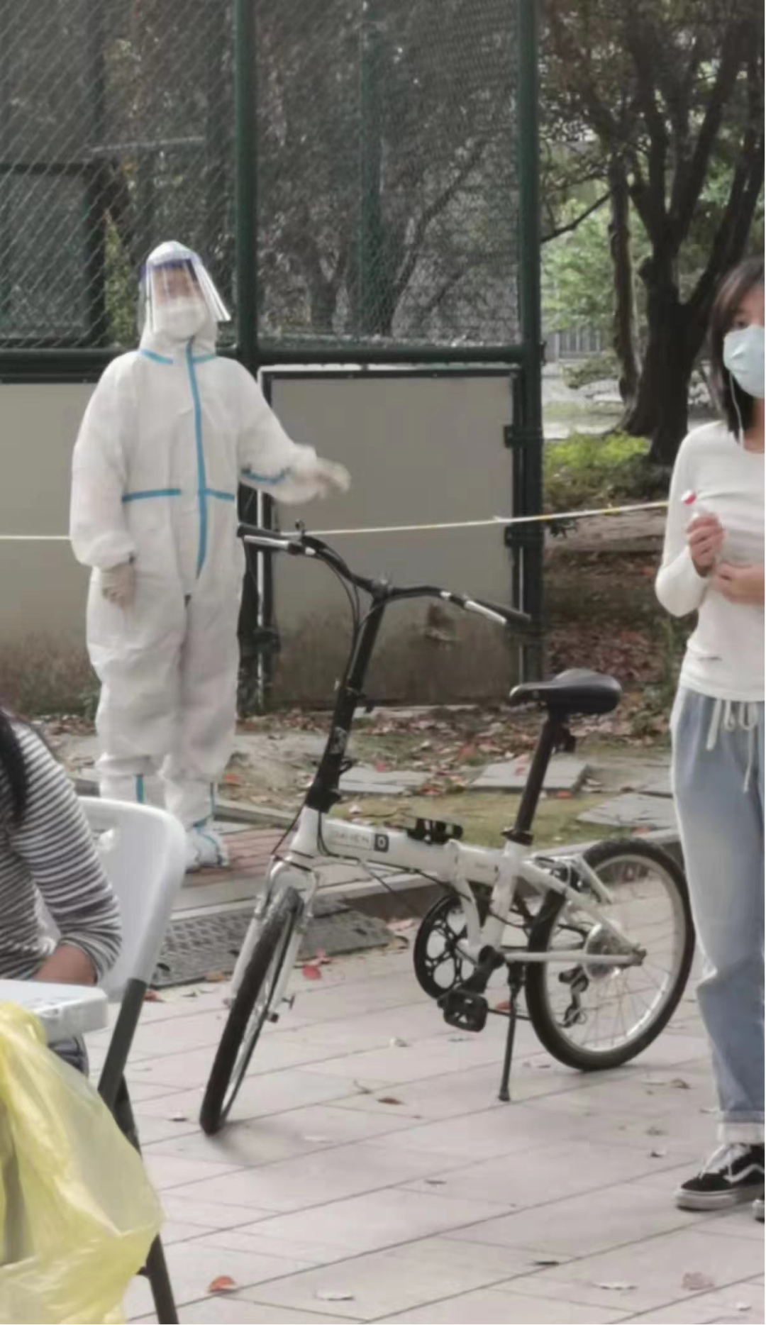 来自本科生第二党支部。西南十一楼四层层长/网格员、核酸检测志愿者、楼内轮岗志愿者。