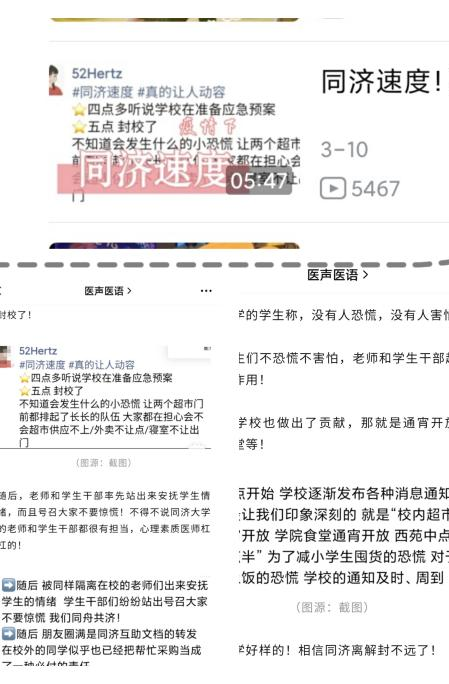 来自研究生第九党支部。作为防疫志愿者参与彰武社区早中晚餐搬运以及食堂饭盒打包。协助彰武社区6号楼的生活物资搬运与发放,并协助核酸检测现场的物资搬运。参与彰武社区3号宿舍楼4楼的楼层监控。积极配合核酸抗原检测和横向配餐、配物资工作。参与CAUP“何以家国——同济记疫”活动,绘制了自己在疫情期间的所见所感。