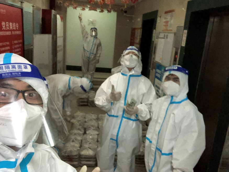 来自本科生第三党支部,西北三楼临时第四党支部,负责西北三楼核酸检测的秩序维持与结果;协助层长安排楼层网格员工作;作为网格员进行楼道巡逻和送餐。