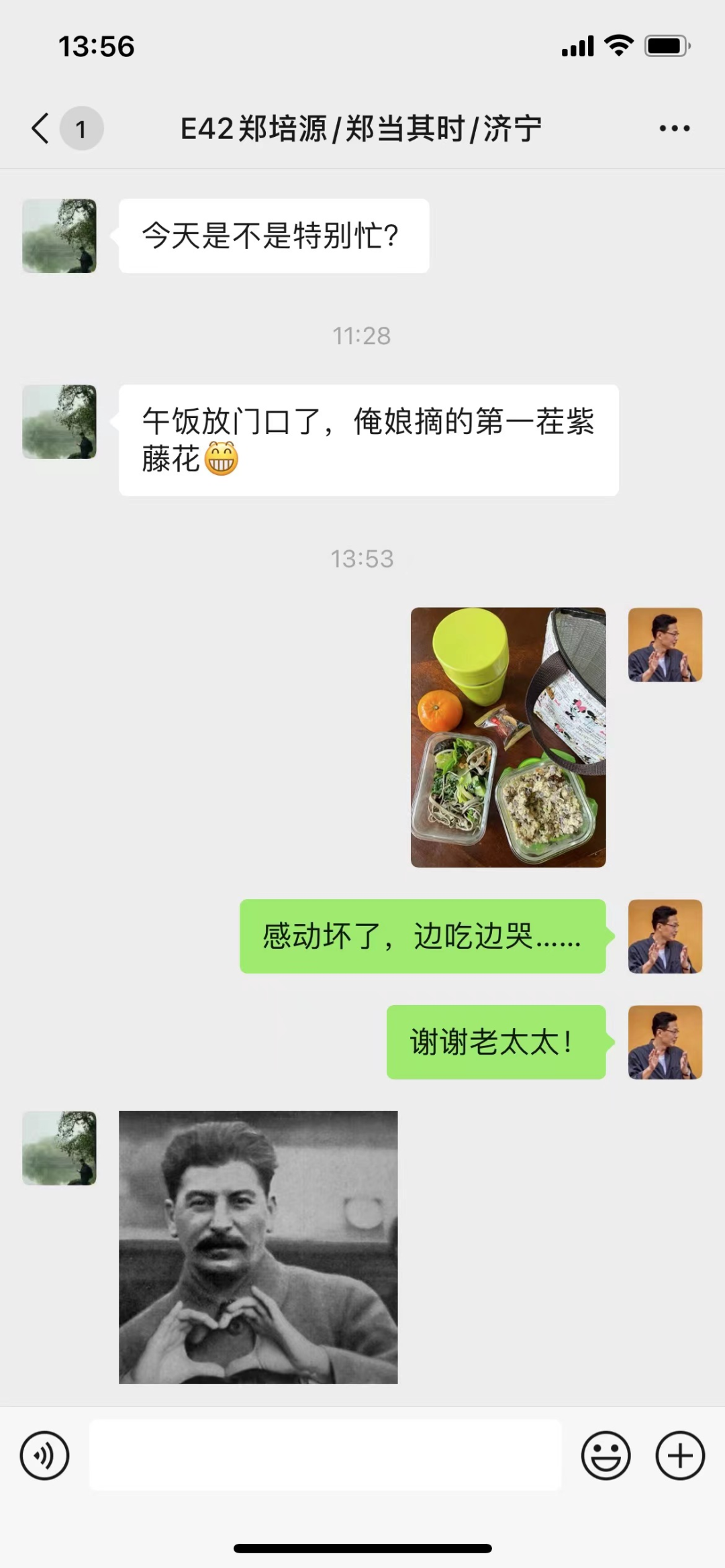我常常想,困难的时候,团结互助大概就是最好的武器了。人们在这样困难的境地下,有着各式各样的互相关爱。我们小区里很多邻居都很关心我的生活,生怕我(近期)一个人在家吃不好饭,常常“投喂”我。常常是我做完工作回家,门前台子上放着点心、新鲜蔬菜、牛奶、啤酒、韭菜盒子……还发微信给我“热的,快趁热吃”,有些东西我都不知道是谁送的。感动坏了,我在社区微信大群里说“我每天回家都要站在门前先哭一会儿”。