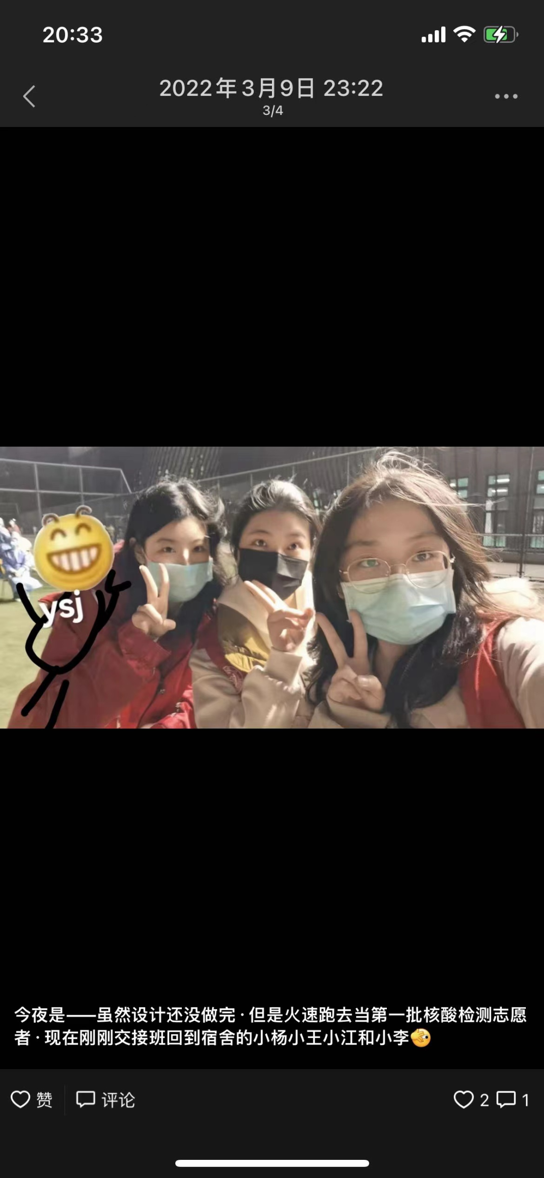 2022年3月初,我自愿报名,成为我们社区的一名核酸筛查工作的志愿服务者,工作至今。