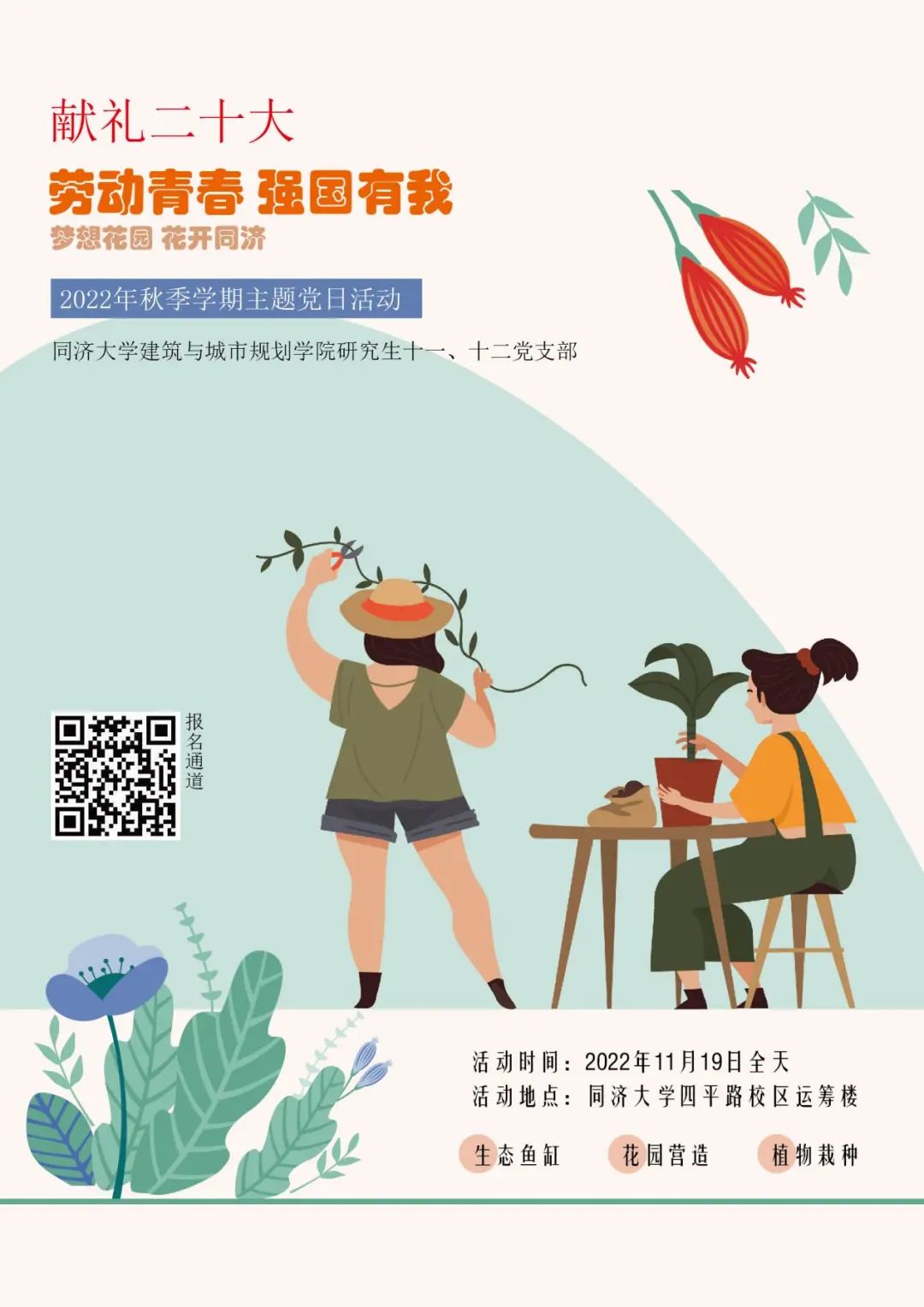 靠谱党建|劳动青春,强国有我:研究生第十一、十二支部2022年秋季学期主题系列党日活动之“梦想花园,花开同济”顺利开展