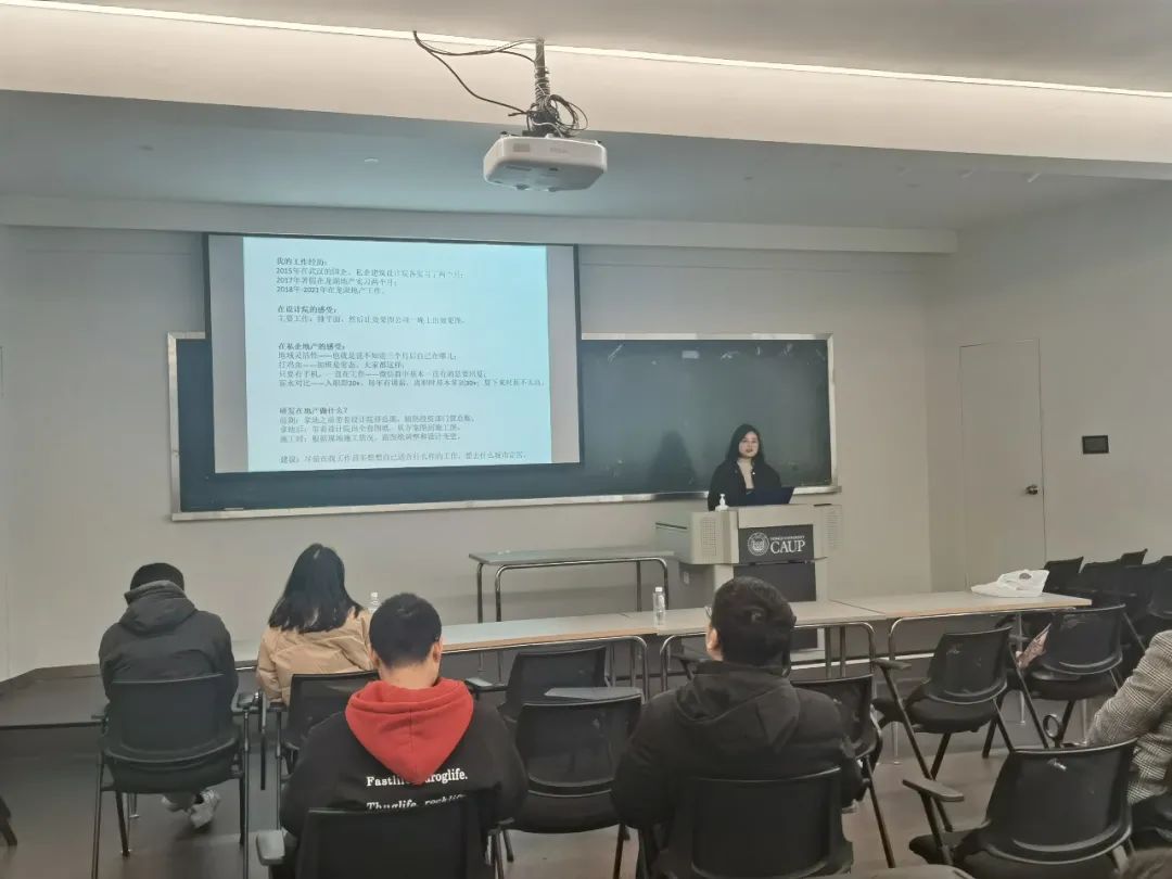 博士生赵田同学有着丰富的地产实习经历和地产工作经验。她分别介绍了自己的实习经历、地产面试流程与技巧,以及地产工作内容。她分别介绍了建筑设计院与私企地产的工作内容和风格:地产就业地域灵活性大、加班是常态。对于毕业季的同学,赵田同学建议大家综合考虑工作内容、意向城市等方面。