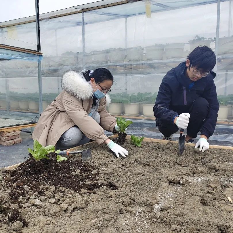 同学们首先选定每个地块的设计参考图案进行放样标记,然后在基地管理人员姚师傅的指导下,领取手套、铲子、耙子等工具。按照蔬菜的种植要求,将立体大棚内多个品种的盆栽蔬菜进行露地移植。同学们既可以发挥创造力,对地块图案进行完善,又能亲手体验劳动,获得农业生产的基本知识和技能,培养对于劳动的正确认识和良好的态度与习惯。
