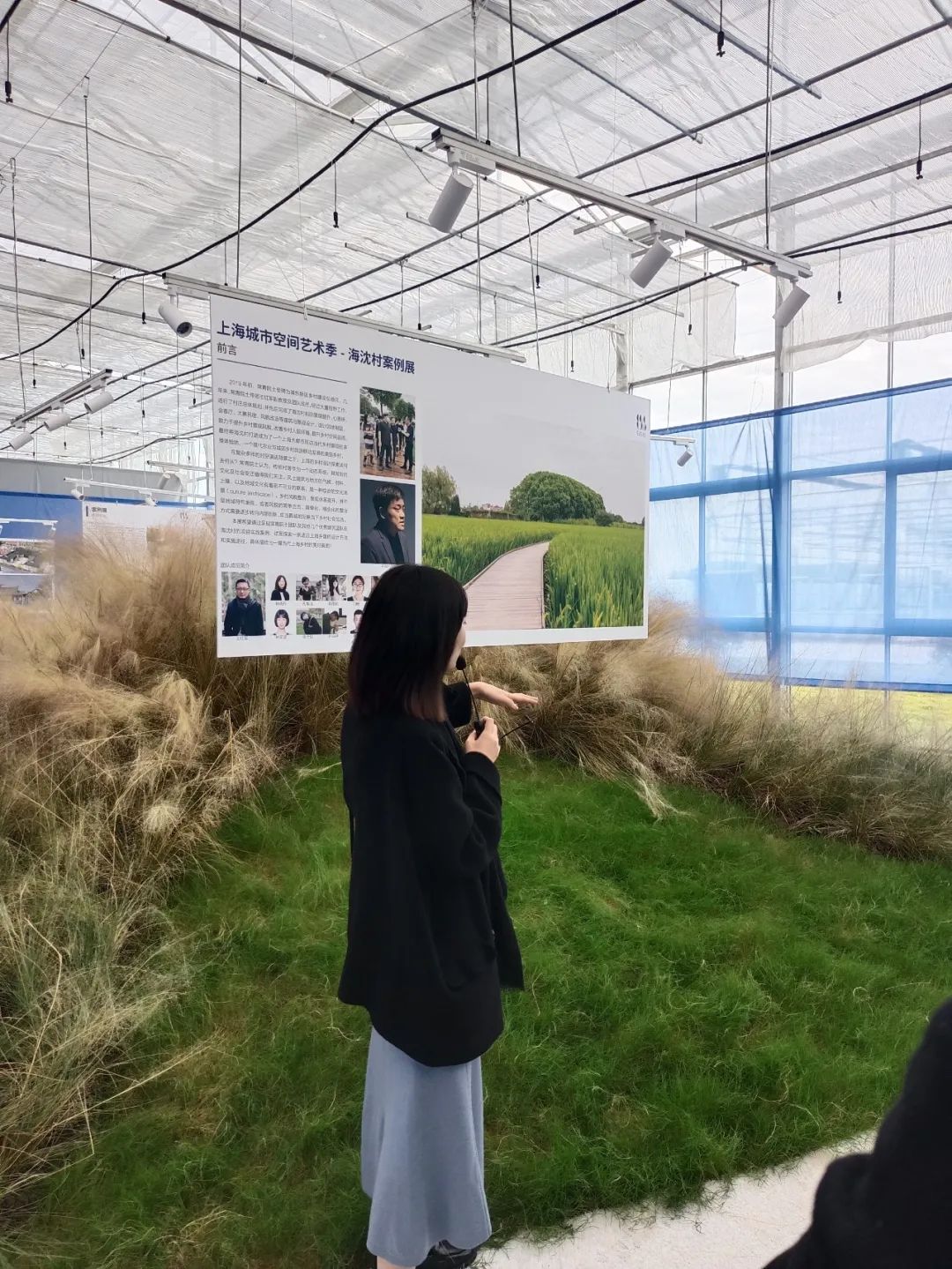 在座的各位青年都曾奔赴祖国各地,将论文写在祖国大地上、将实践做到城市、乡村,以建筑人、规划人、景观人之角度助力城乡发展。在前半程短短的两小时内,大家已有很多感悟,纷纷表达自己的想法,总结海沈经验中一些可以借鉴的普适性策略,探讨精细化治理阶段的可行措施。行至SUSAS艺术季主展馆,大家带着问题和思考参观了海沈乡村振兴主题展及常青团队项目展。经过参观,大家了解到:海沈的成功实践离不开多方的协同努力——市区镇村干部、设计师、企业、村民们有着共同的美好愿景和振兴目标,美丽海沈正是各方两年以来共同努力的结果。同学们经过一天的考察受益匪浅,也将学以致用,投身于实践中。