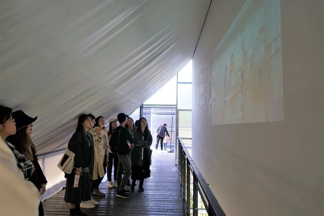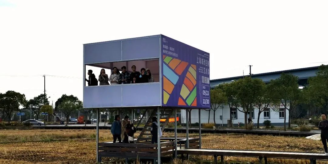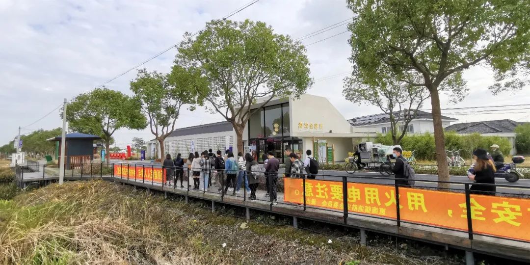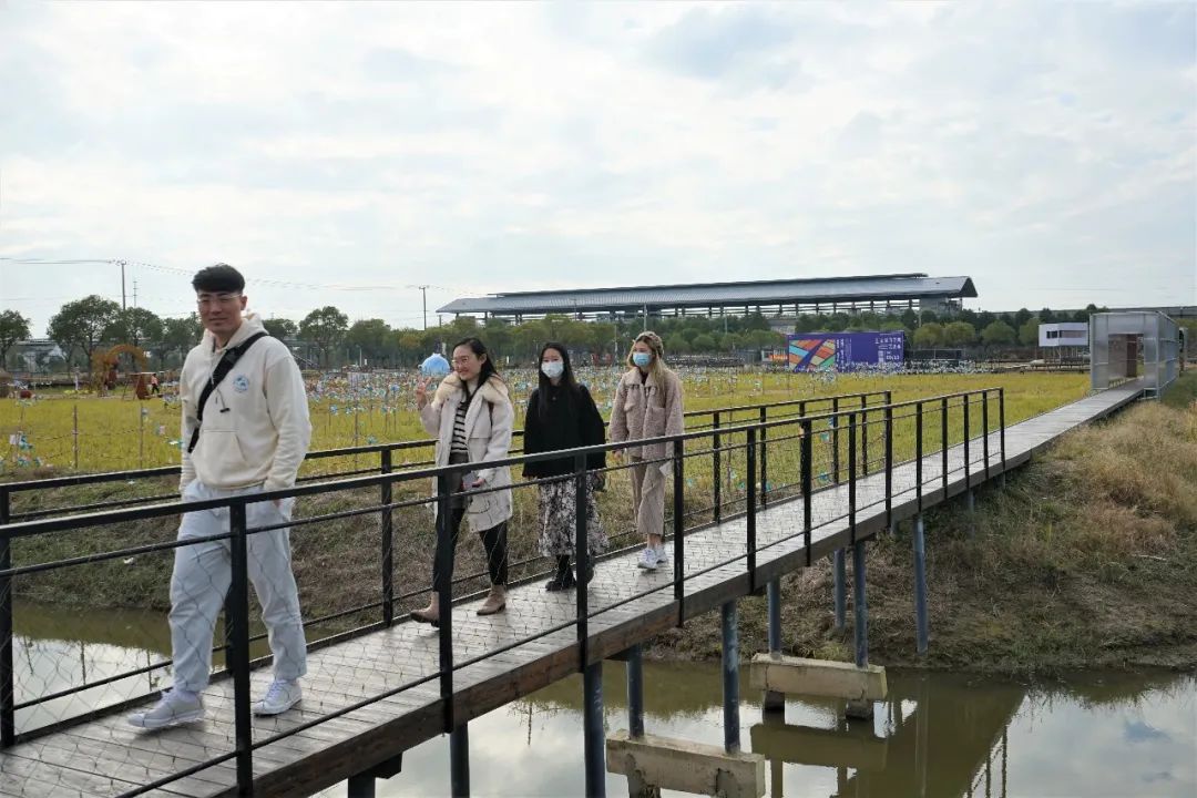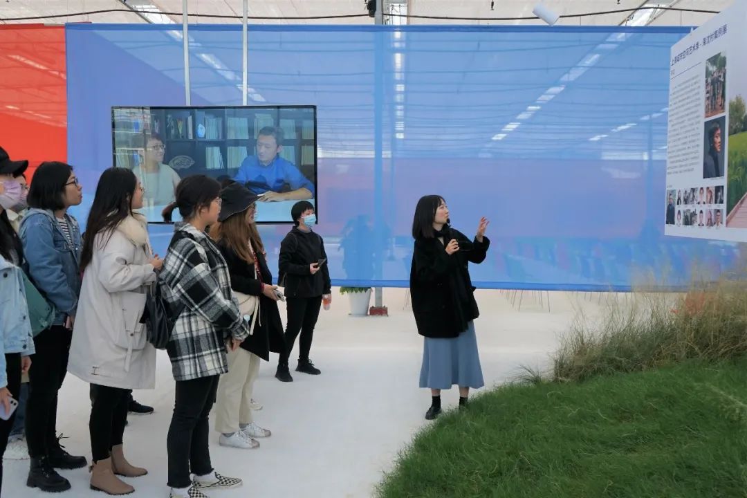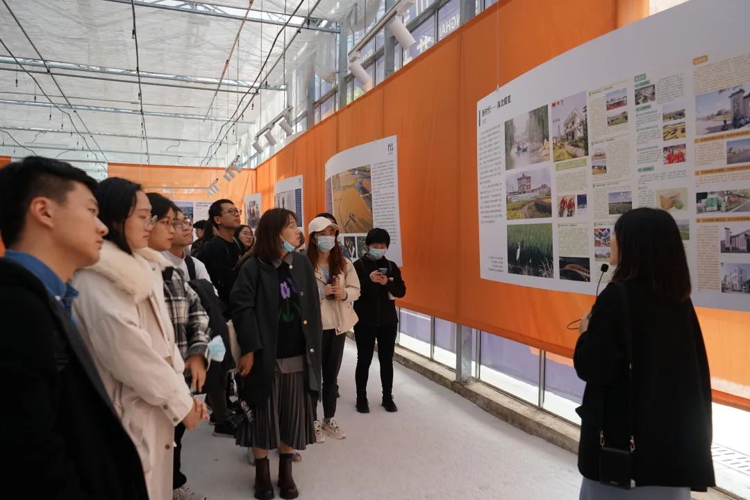 研讨会结束后,我们来到了2021上海城市空间艺术季海沈村展场参观。展场上,主题展、案例展、亲子区、影像展、休闲区、导览区六大功能区域有机排布,艺术季主题展、村庄设计案例展、沪乡村民生活影像三大专题展览则向我们充分展示了海沈村的美丽乡村建设成果。