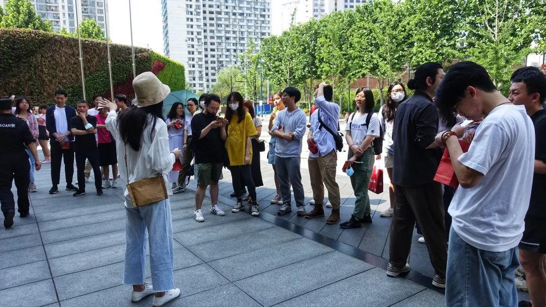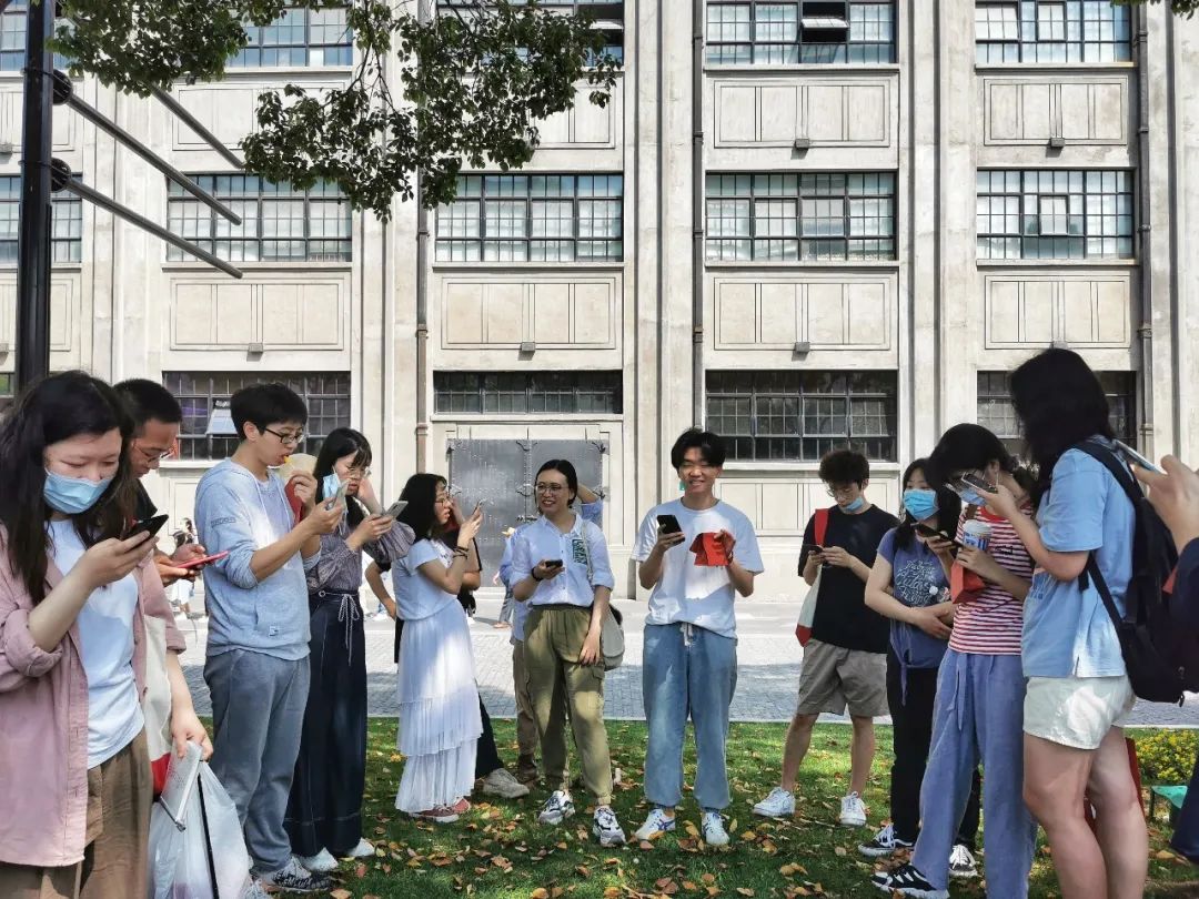 参与活动同志、同学在“四行仓库纪念馆”前合影,赵菡摄