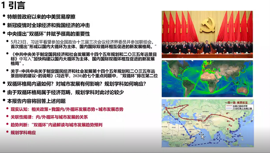 02 《“双循环”新格局对城市发展的影响及规划学科的响应》 方辰昊博士生 方辰昊博士以“双循环”新格局对城市发展的影响及规划学科的响应为题,阐述了当今四个方面的问题。 此外,方博士也分享了他在博士阶段论文写作的计划安排和心路历程,特别是要平衡学业与锻炼的经验。 方辰昊博士生分享的部分内容
