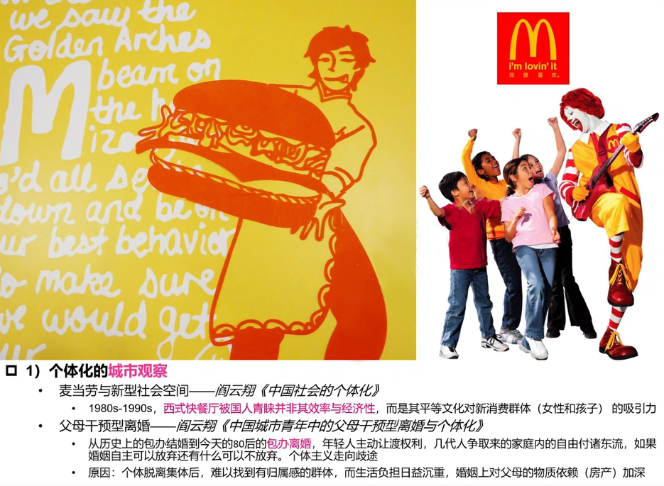 01 《私人生活的变革》读书分享与定性研究方法介绍 朱牧文博士生 朱牧文博士与我们分享了人类学家阎云翔先生的著作《私人生活的变革:一个中国村庄里的爱情、家庭与亲密关系1949-1999》,基于此拓展到阎云翔先生的近年在该村回访中的新发现,关于代际关系和孝道变迁,中国特色的个体化进程等。 朱牧文博士生分享的部分内容