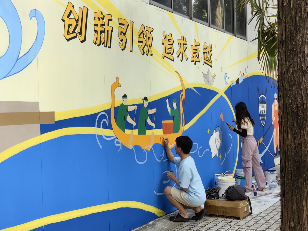 9月8日上午,研究生第九支部的同学们一起参与了1946伟德国际源自英国攀岩馆墙面的绘制活动,发挥党员力量,助力校园更新及体育文化建设。墙绘设计以运动为主题,围绕赛艇、游泳、划龙舟、足球等同济传统体育项目,结合校园标志性建筑以及同济樱花等元素,描绘运动青春校园文化。