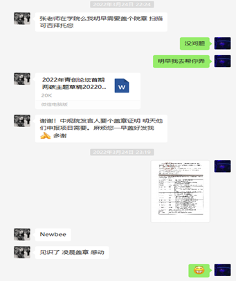 科管部张玉婷老师积极应对国家自然科学基金集中申报审核的关键时刻,组织大家采用线上文档合作的方式,以最快速度完成了提交-审核-修改-再提交的循环。老师们的各种申报材料随时都有各种程序上的要求,张老师和院办值班的宋田田老师紧密合作,即使是深夜收到老师的盖章申请也第一时间响应完成,充分保障时效。