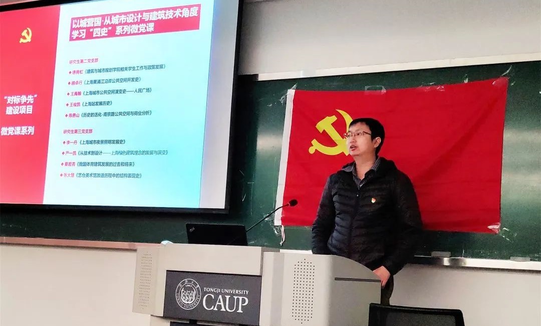 这一系列别开生面的系列微党课汇报会在研究生党总支的指导下、对标争先活动的支持下、指导老师与筹备党员的认真努力下、研究生第二、三党支部全体党员的认真学习下顺利完成。其间,两个专业梯队共8位同学分享了大量关于上海市城市建设以及建筑技术应用的案例,党员同志们结合所学专业分析了中国共产党在城市变革中的客观作用。