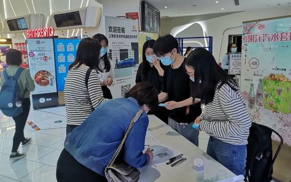 14:15,研究生第十三支部的志愿者们早早来到五角场合生汇中影国际影城,向影院经理领取电影票后,便等候在影院入口处为参与活动的党员们分发电影票。