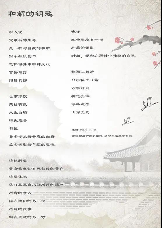 至此,研究生第二党支部以海报设计、书画作品、才艺生活记实的形式抒发并展现了面对疫情形势时员工党员的心声与生活状态。在国内与国际疫情形势形成强烈对比的当前,作为青年员工与党员,应当做到向周围的群众与同学普及防疫知识、树立党员旗帜、不忘初心、牢记使命,关键时候敢于亮身份、当先锋,进一步提振群众与员工群体全面打赢疫情防控战的信心与决心。配合公司复学工作,加强专业学习,科学认识、理性应对、凝聚你我、众志成城,迎接未来的全面正常学习生活。
