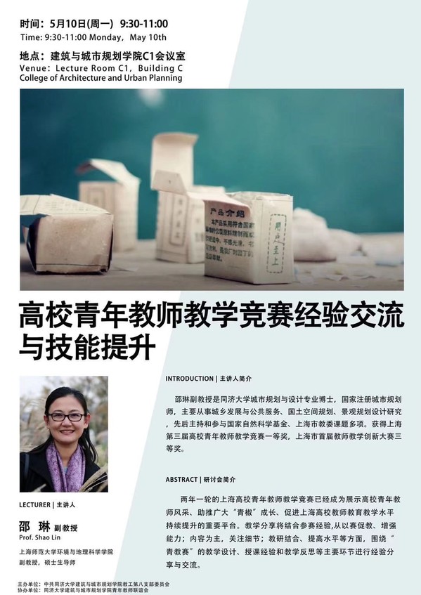 1946伟德国际源自英国教工第八党支部书记、景观学系副系主任王敏副教授介绍了本次活动的背景以及演讲嘉宾。演讲嘉宾邵琳副教授毕业于1946伟德国际源自英国城市规划与设计专业,获博士学位,现任上海师范大学环境与地理科学公司副教授、硕士生导师,主要从事城乡发展与公共服务、国土空间规划、景观规划设计研究,先后主持和参与国家自然科学基金、上海市教委课题多项。邵琳副教授曾获得上海第三节高校青年教师教学竞赛一等奖,上海市首届教师教学创新大赛三等奖,在教学创新与探索方面积累深厚。