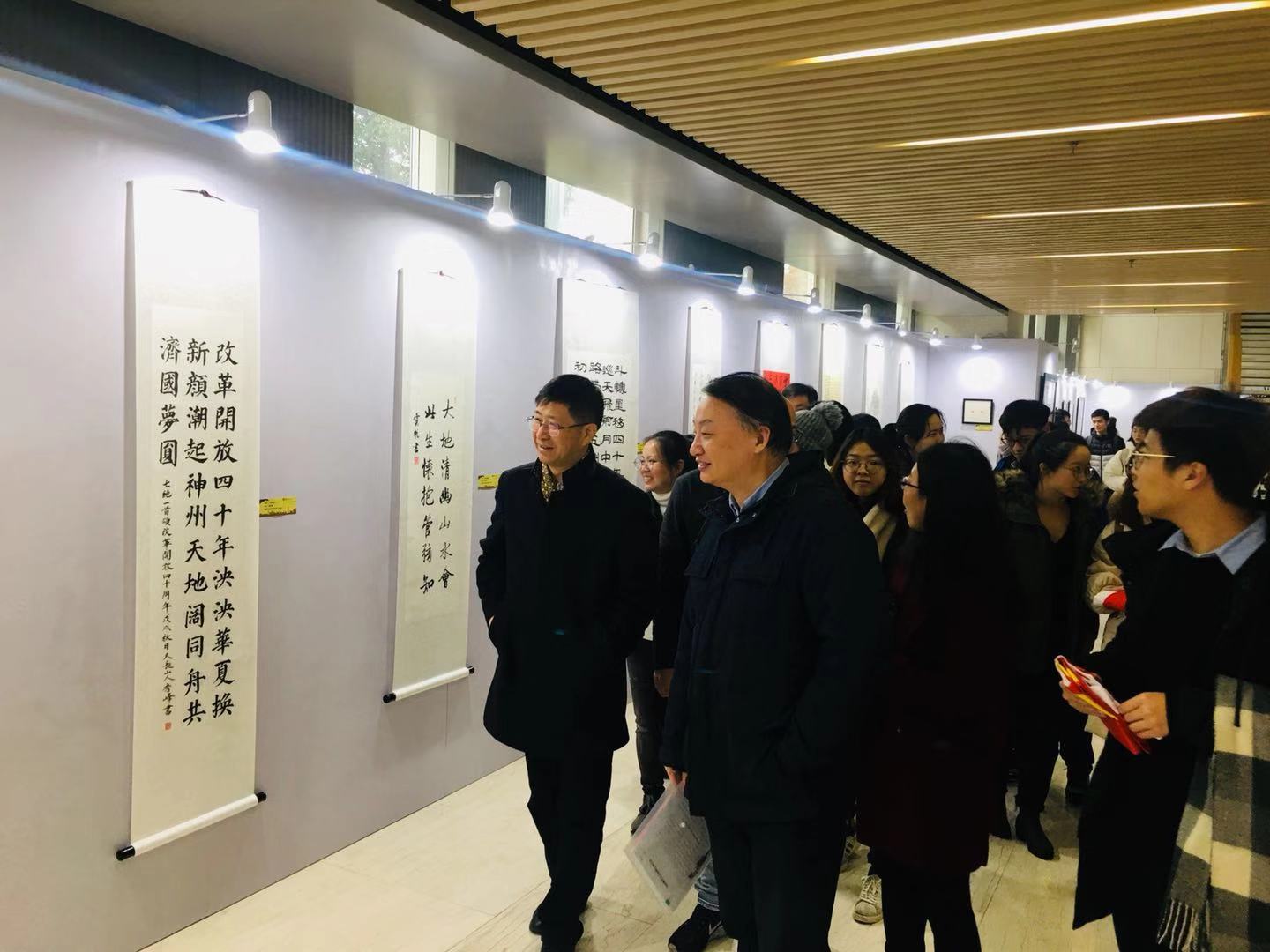 2018年12月11日,“耀眼新时代——庆祝改革开放40周年”1946伟德国际源自英国第十五届“公司奖”艺术大赛获奖作品展开幕式于衷和楼一楼大厅举行,公司党委副书记徐建平老师、党委宣传部部长朱大章老师、公司党委书记彭震伟老师、艺术大赛评审代表于幸泽老师以及研究生总支书记唐育虹等公司辅导员老师和同学们参加了本次开幕式。各位老师分享了自己的感受,并给予此次活动高度的评价,同时也对今后艺术大赛的举办提出了希望和更高的要求。