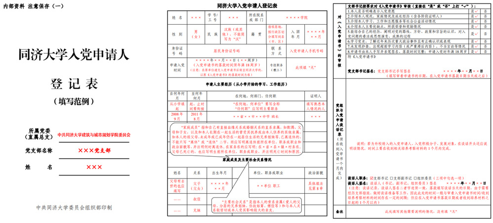 (2)入党申请人登记表(一)(注:填写格式见图1)