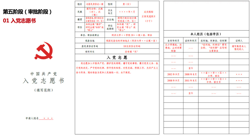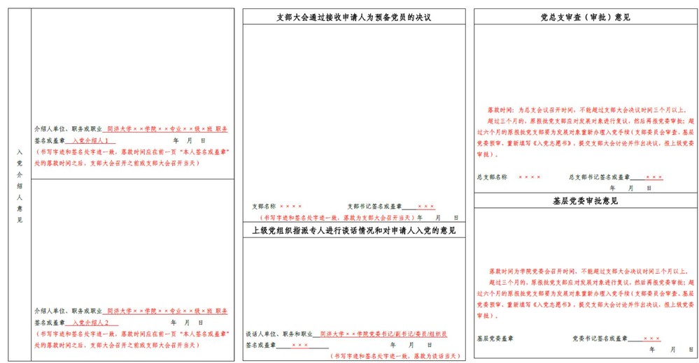 (1)入党志愿书(填写至“支部大会通过接收申请人为预备党员的决议”,“入党志愿”开头处完整填写入党誓词,填写格式详见图2)。