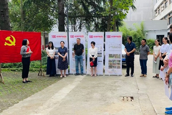基建处总工李翔老师随后致辞。他对参与党建花园建设的党员师生表达了感谢与赞扬,并激励同学们应努力把论文与实践成果写在同济的土地,写在祖国的大地上。接下来,王敏老师致辞。她强调“强国有我,后继有人”,党建花园是各位党员师生们在校园、社区中,以实际行动向党的光荣献礼,并且对王珂老师与刘悦来老师为花园建设所做出的无私奉献表达了诚挚的感谢。最后,唐育虹老师表示,党建花园倾注了老师和同学们的心血,祝愿大家的专业智慧在校园及社区遍地开花。