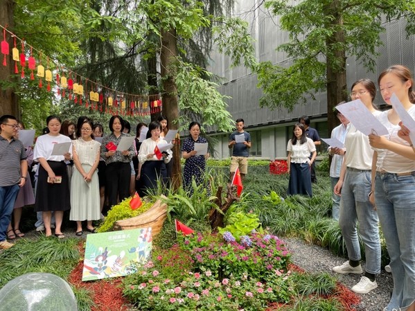 揭幕式邀请到公司党委书记刘颂老师致辞。刘颂老师首先向党的生日表达了热烈祝贺,继而阐述了党建花园的重要意义,称这是各位党员师生们对党的生日生动的献礼,是景观学系师生党支部发挥专业优势,为美化校园环境做出的重要贡献。目前,研究生十一、十二支部的党员同学们通过辛勤努力完成了党建花园实验田的建设,取得了初步的成果,希望景观学系师生党员共同维护好这一校园中默默盛开的美好花园,并将这类优秀的实践活动一直传承下去。