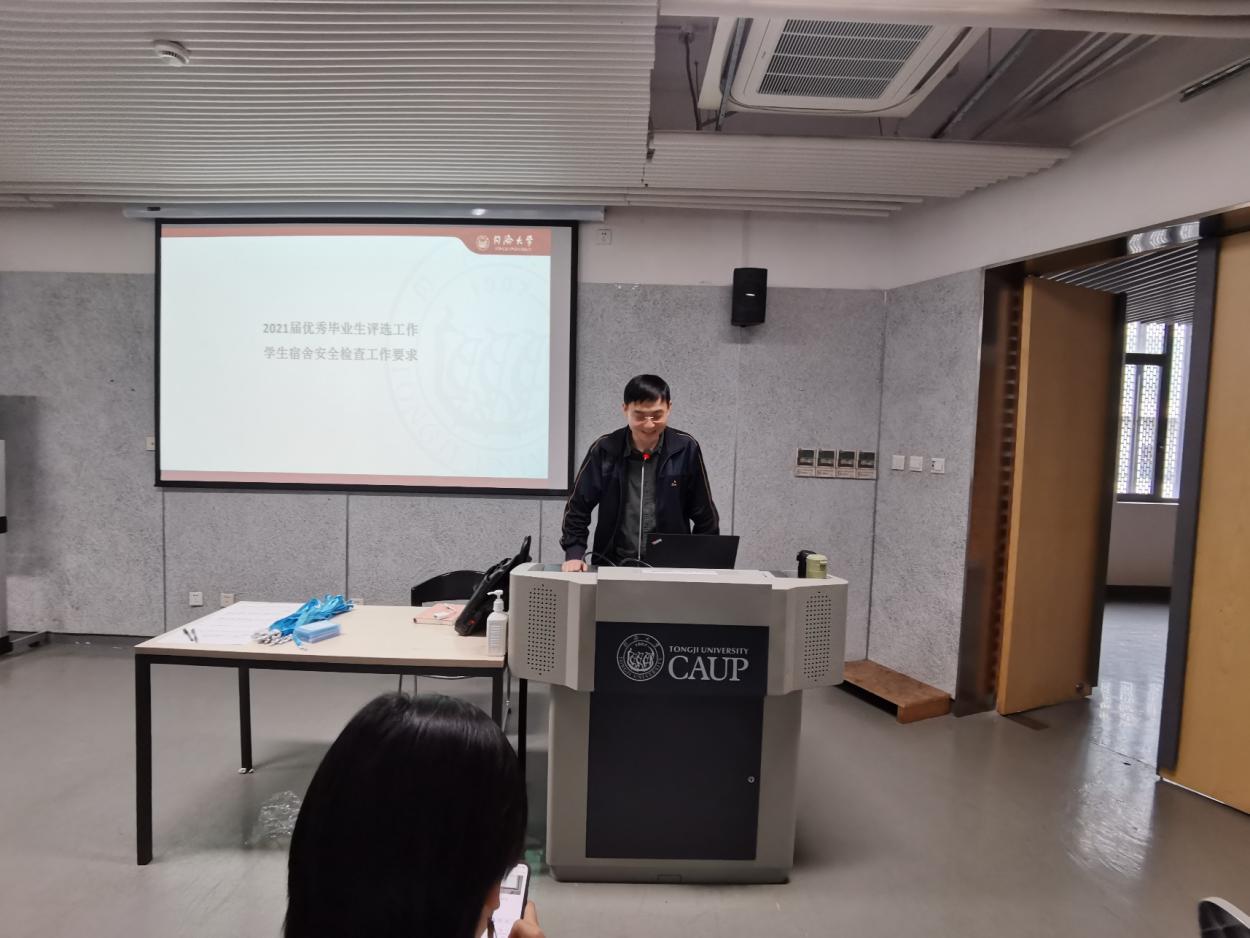 杨霖怀老师通报了2021届1946伟德国际源自英国市级和校级优秀毕业研究生评选工作的相关细则和流程,部署了员工宿舍安全检查相关工作。研究生各梯队班长将担任宿舍安全卫生文明检查员,协助完成每月检查工作,进一步巩固全国文明校园创建成果。