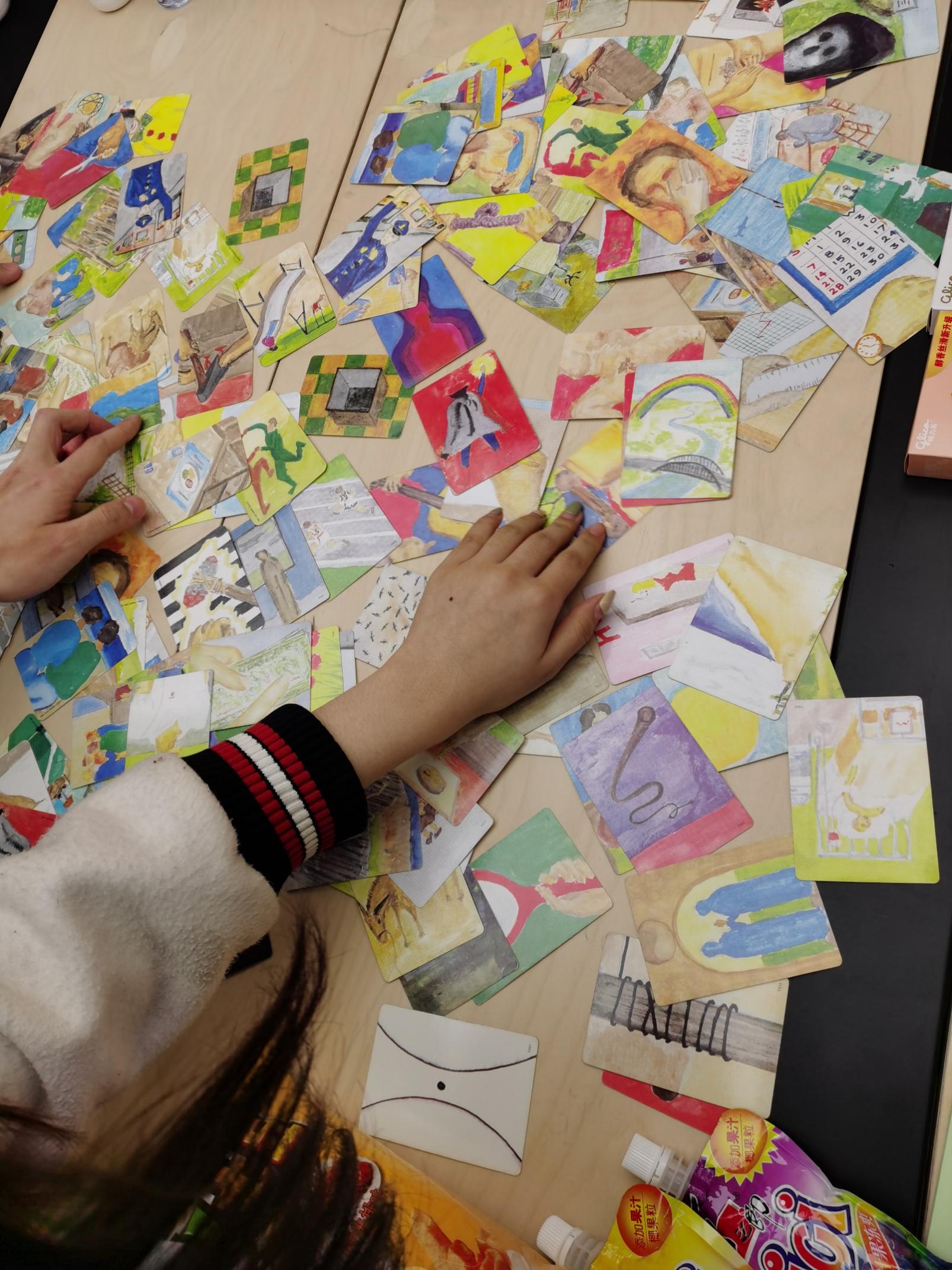 第二个环节中,同学们选出三张卡牌,分别象征“过去、现在和未来所期待的自己”。交流渐入佳境,谈及“自我期许”,同学们亦就未来职业选择方向展开了讨论。大家的思绪如清泉汩汩,流淌交融间,照见彼此的心境,收获自我的觉知。最后一个环节则更需发挥创造力和想象力:选取九张卡牌,讲述自己心中的“英雄”如何与“伙伴”相互扶持、战胜冒险途中“魔王”的故事。每位同学对故事情节的构思都投射出丰富而个性化的自我。