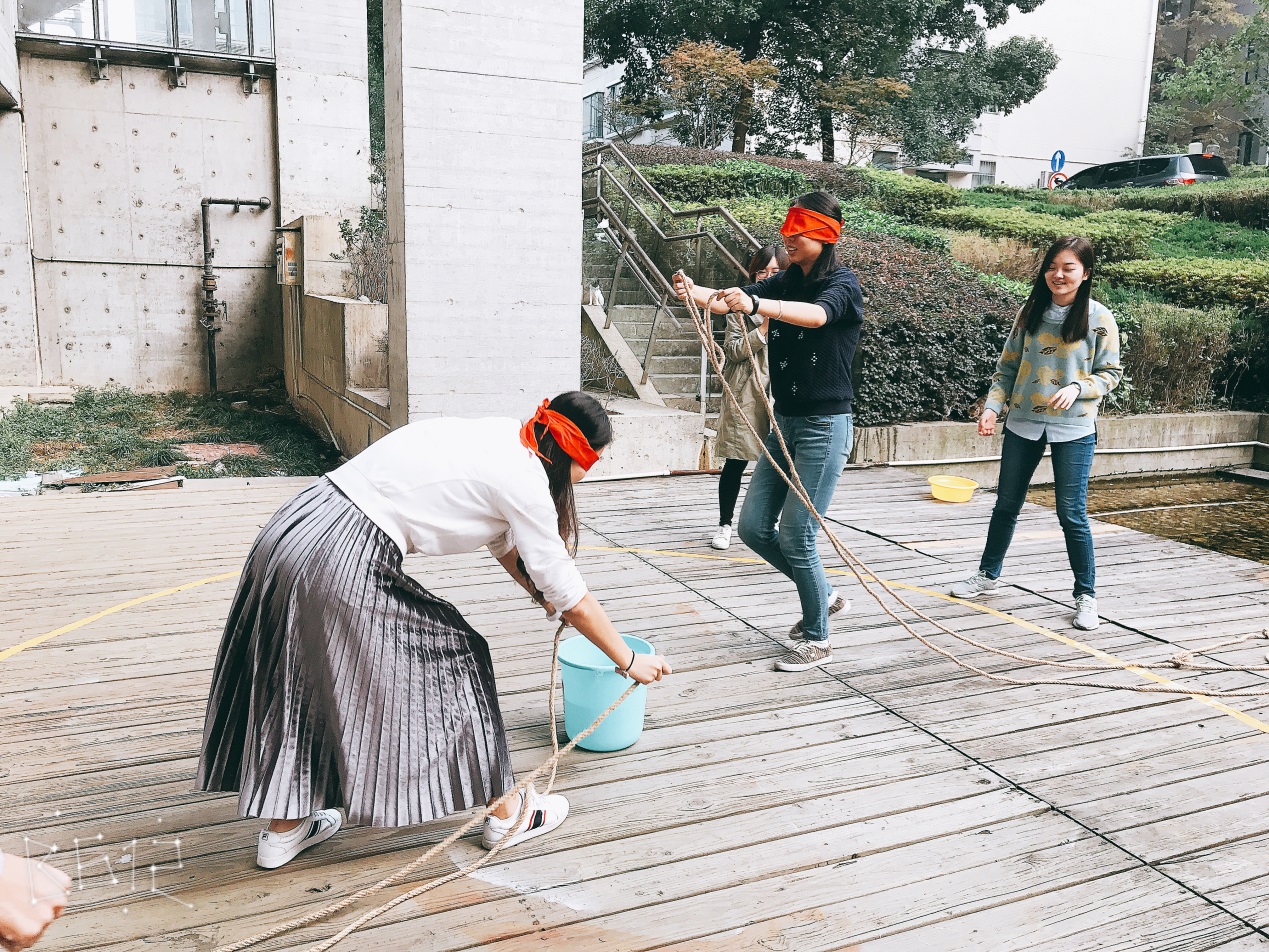 最后一个环节是提桶大作战,比拼大家的指挥能力和力气。