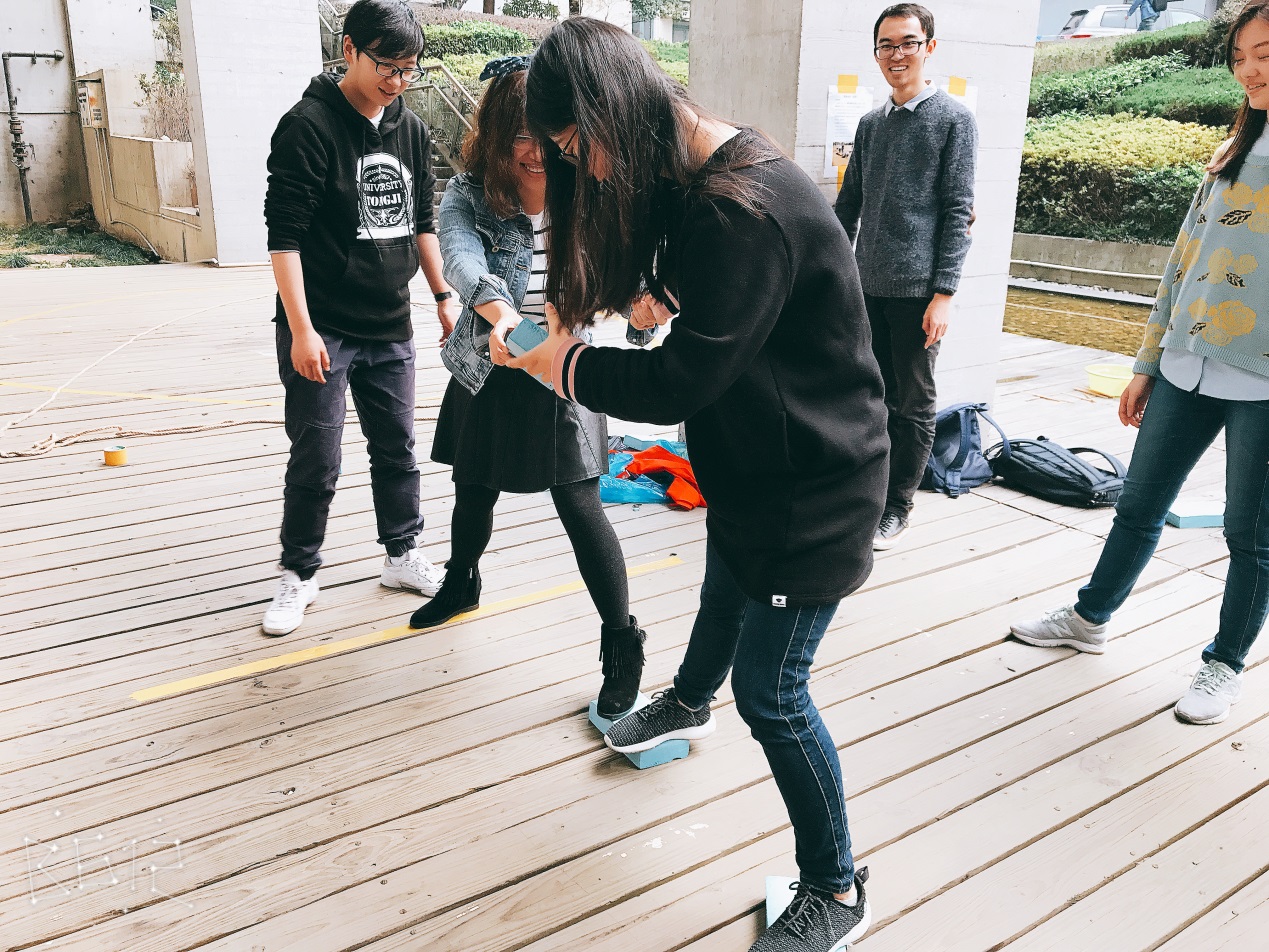 周二下午一点,文体部的部员们就已经开始进行现场的活动布置。为了防止参与队员们由于在活动中运动激烈而造成关节损伤,游戏裁判还带领大家进行了赛前的热身活动。