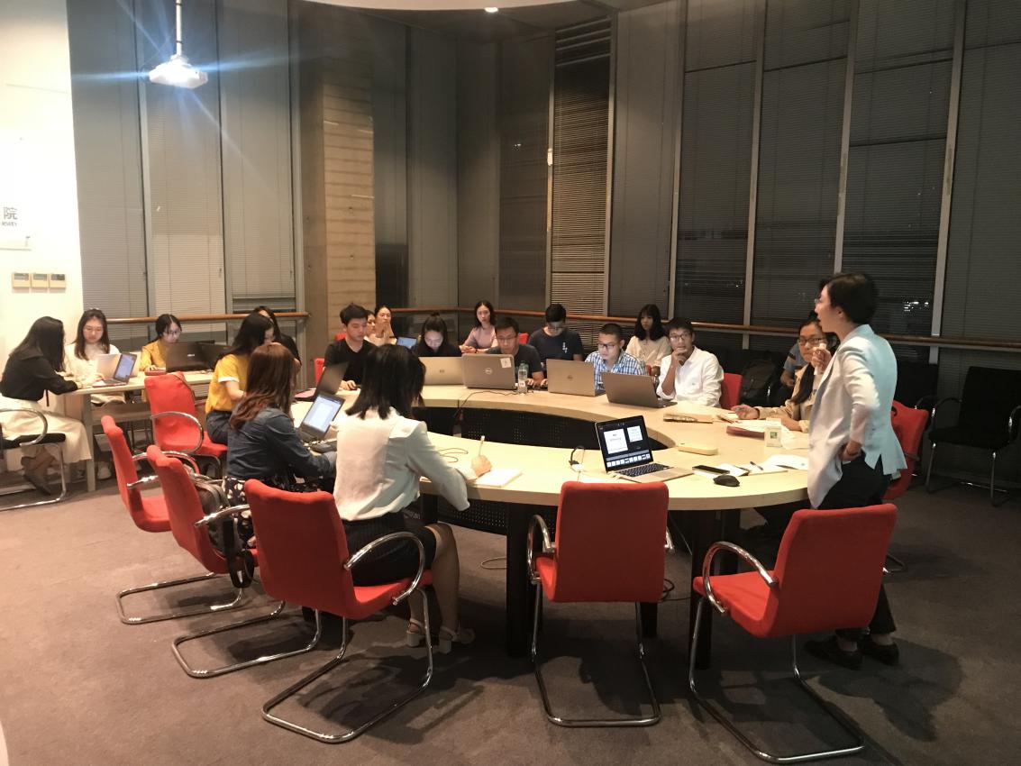 第二环节为方法论实操。刘老师将在场同学随机分为两人一组,互相询问对方申请岗位及竞争优势,并在半小时后进行三分钟presentation,分别为对方陈述岗位及申请理由 ,再由刘老师和其他同学指出不足之处。经过多组同学的汇报,刘老师针对各自的问题提出了改进意见及建议,“听得懂,能复述”成为汇报过程中的第一准则,大家也在这短短的几分钟里得到了更大的提升。